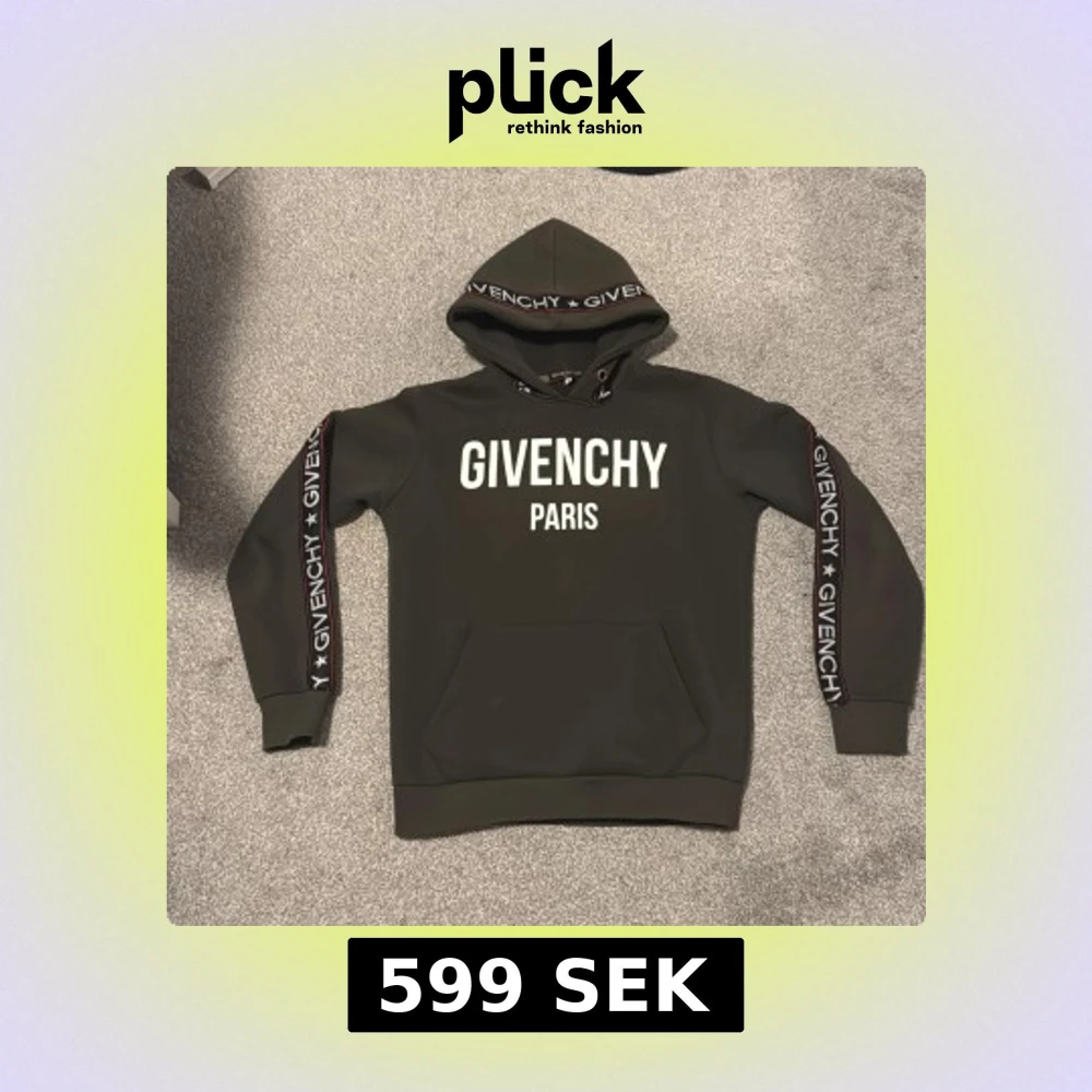 Svart hoodie från Givenchy med stor vit logga på bröstet och text på ärmarna. Huva med snörning och känguruficka framtill. Snygga detaljer med Givenchy-band längs ärmarna. Perfekt för dig som gillar streetwear och exklusiva märken.