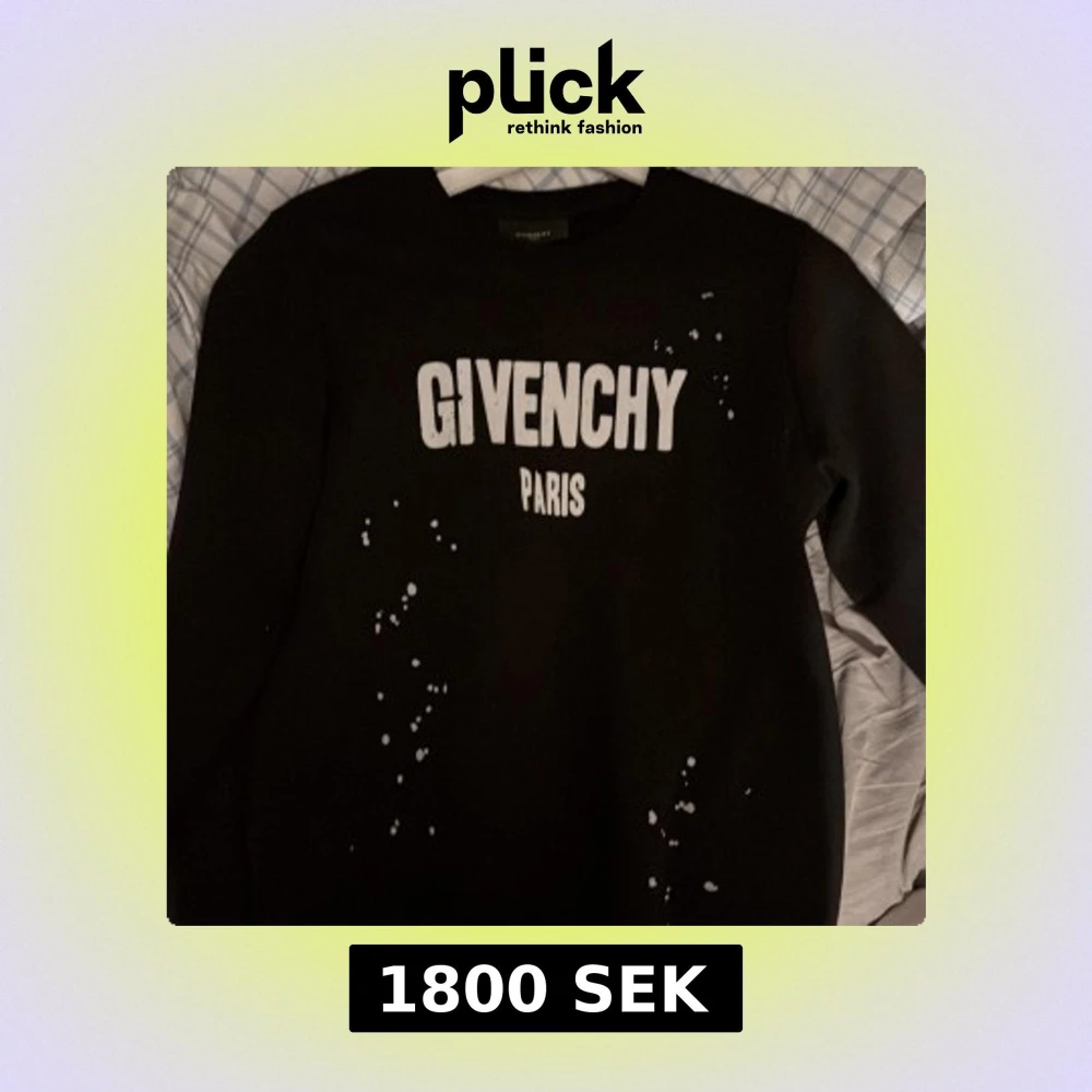 Säljer en svart tröja från Givenchy med vit text 'GIVENCHY PARIS' på framsidan. Tröjan har långa ärmar och ett stänkmönster i vitt som ger en unik look. Perfekt för dig som vill ha något stilrent men med en twist.