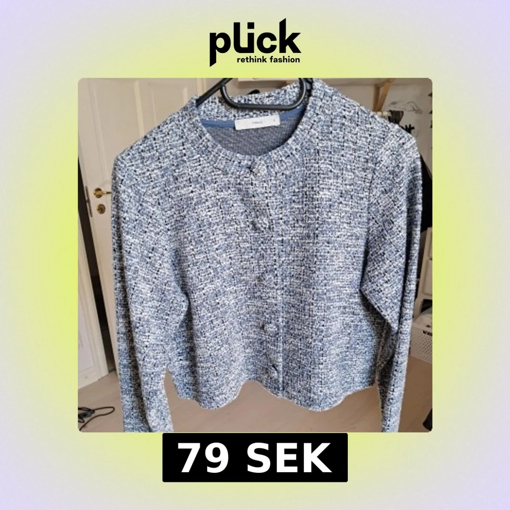 Säljer en blåvit cardigan jacka från ONLY i storlek S. Jackan har ett rutigt mönster, rund halsringning och knappar framtill, lite glittrig. Materialet är grovt vävt och ger en exklusiv känsla. Perfekt för dig som gillar klassisk men trendig stil.