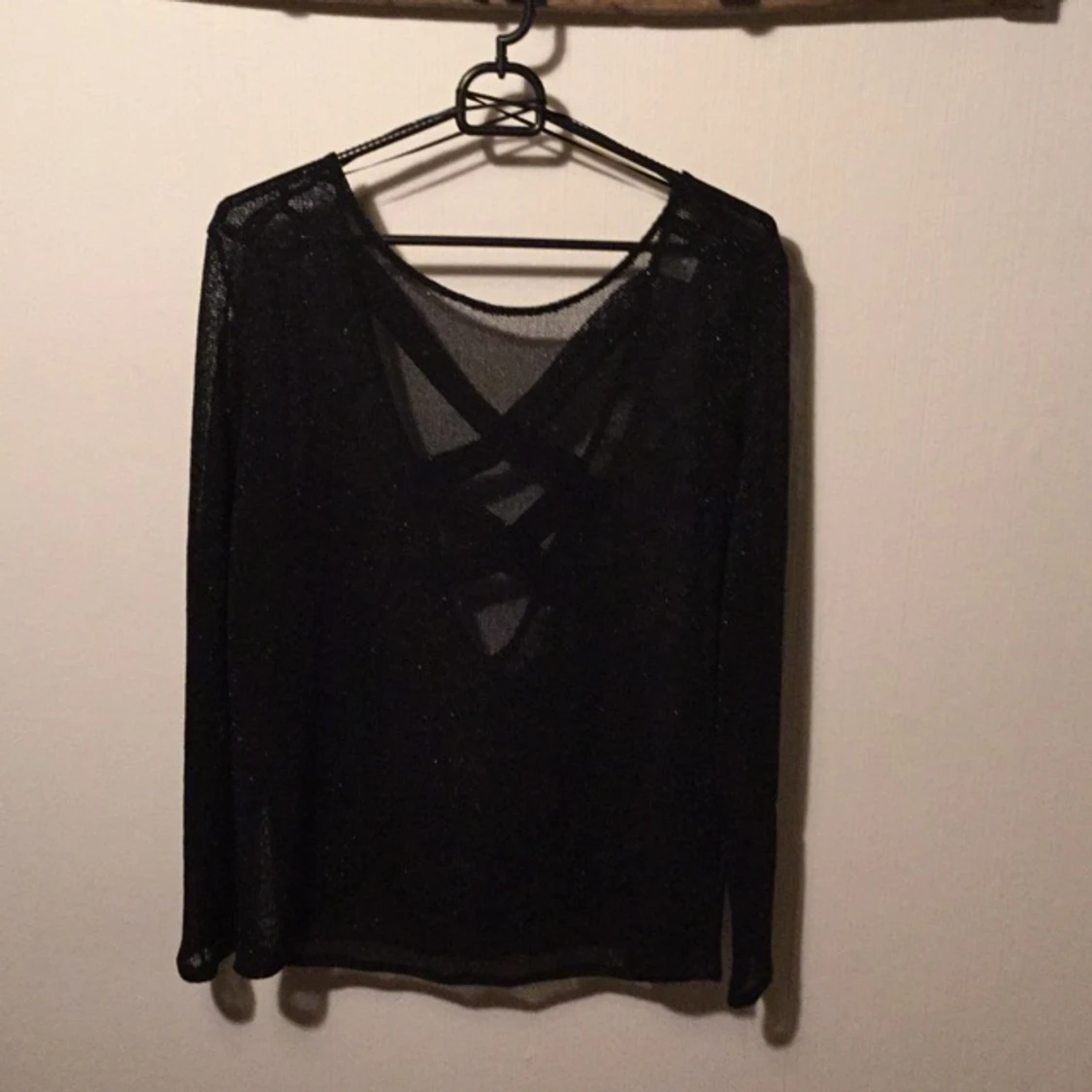 Transparent glittertopp med delvis öppen korsad rygg. St S Färg: Svart/Glitter Märke: HM Använd: 1 gång