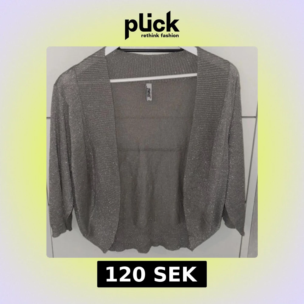 En grå glittrig kofta som inte kommer till användning. Jätte bra skick då den inte har några defekter.