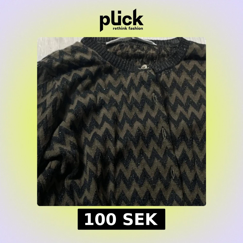 Brungrön och svart kofta med zigzagmönster inspirerat av Missoni grönglittrig kant längst ned!