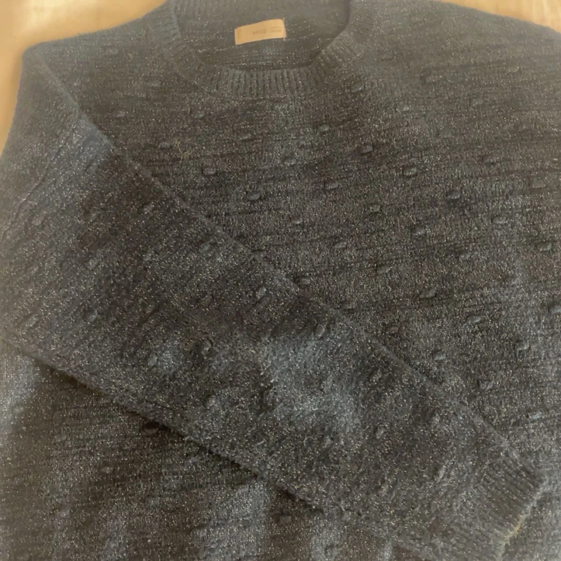 Jätte fin glittrig marin blå stickad tröja från mango! Bara använt den några gånger då nästan i nytt skick!💓