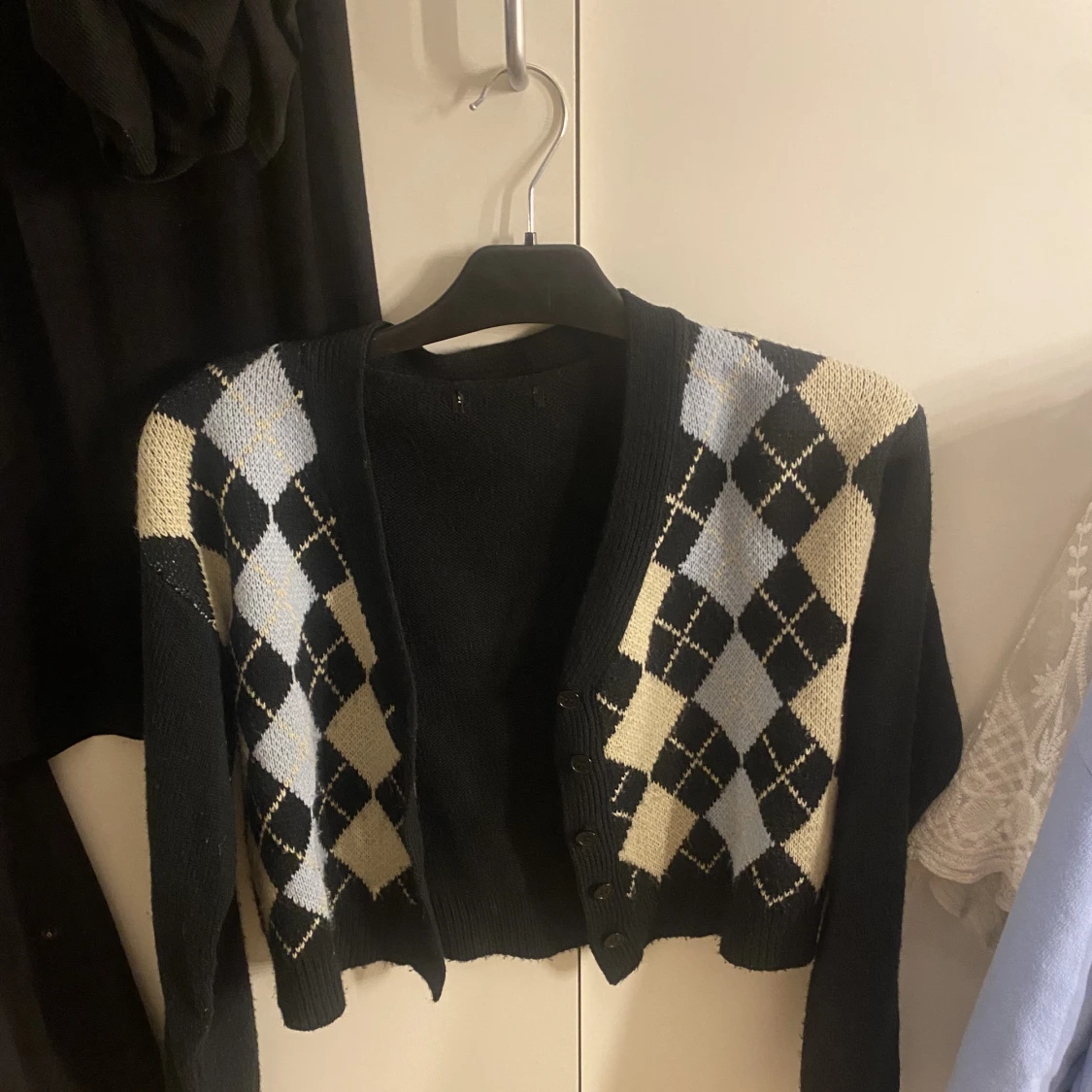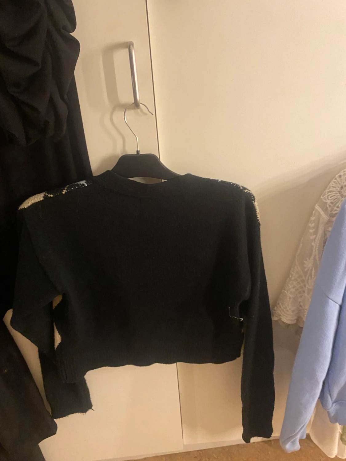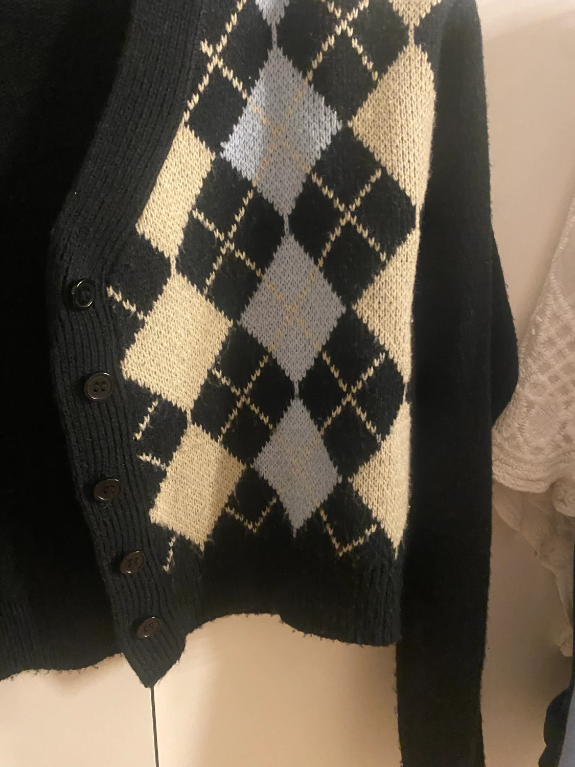 Söt kortare kofta med mönster o knappar. Lappen är bortklippt så vet ej märke🫶