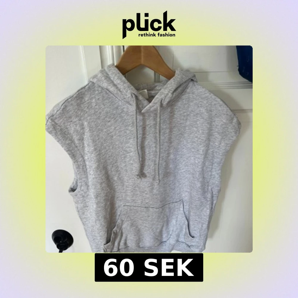 Grå ärmlös hoodie med huva