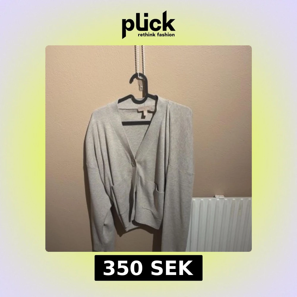 Snygg grå kofta med v-ringning och en stor knapp framtill. Modellen är lite loose och har två praktiska fickor framtill. Perfekt att slänga över en t-shirt eller linne. Mjuk och skön, passar till många olika outfits.