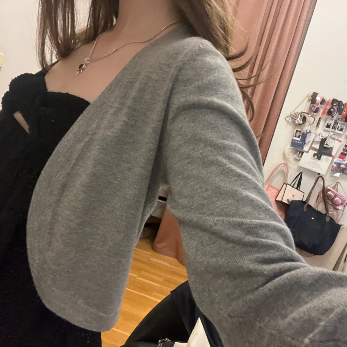 Säljer denna grå bolero i storlek xs men passar s. Jättebra skick och passar till massa outfits.💕