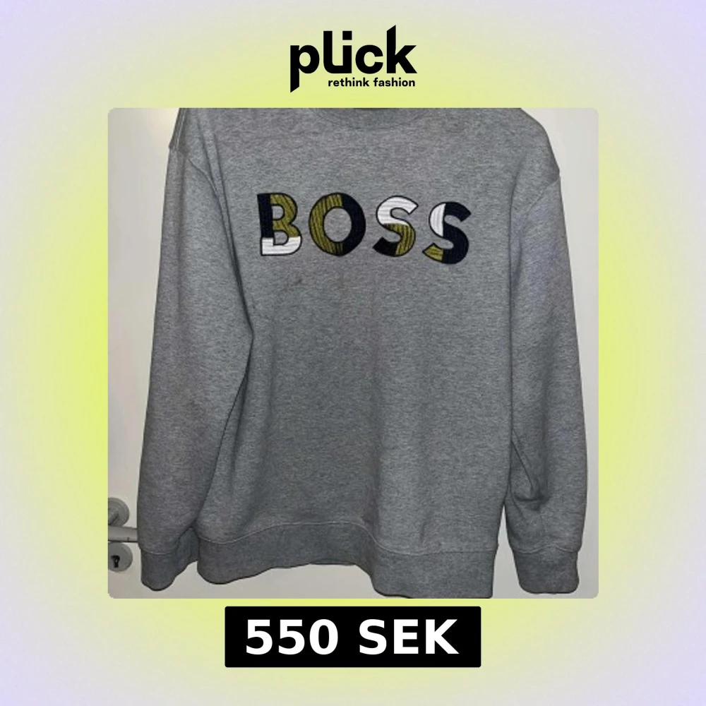 Snygg grå sweatshirt från BOSS med broderad logga i svart, vitt och olivgrönt framtill. Klassisk rund halsringning och långa ärmar. Mjuk och skön bomullskänsla, perfekt för en chill och stilren look.