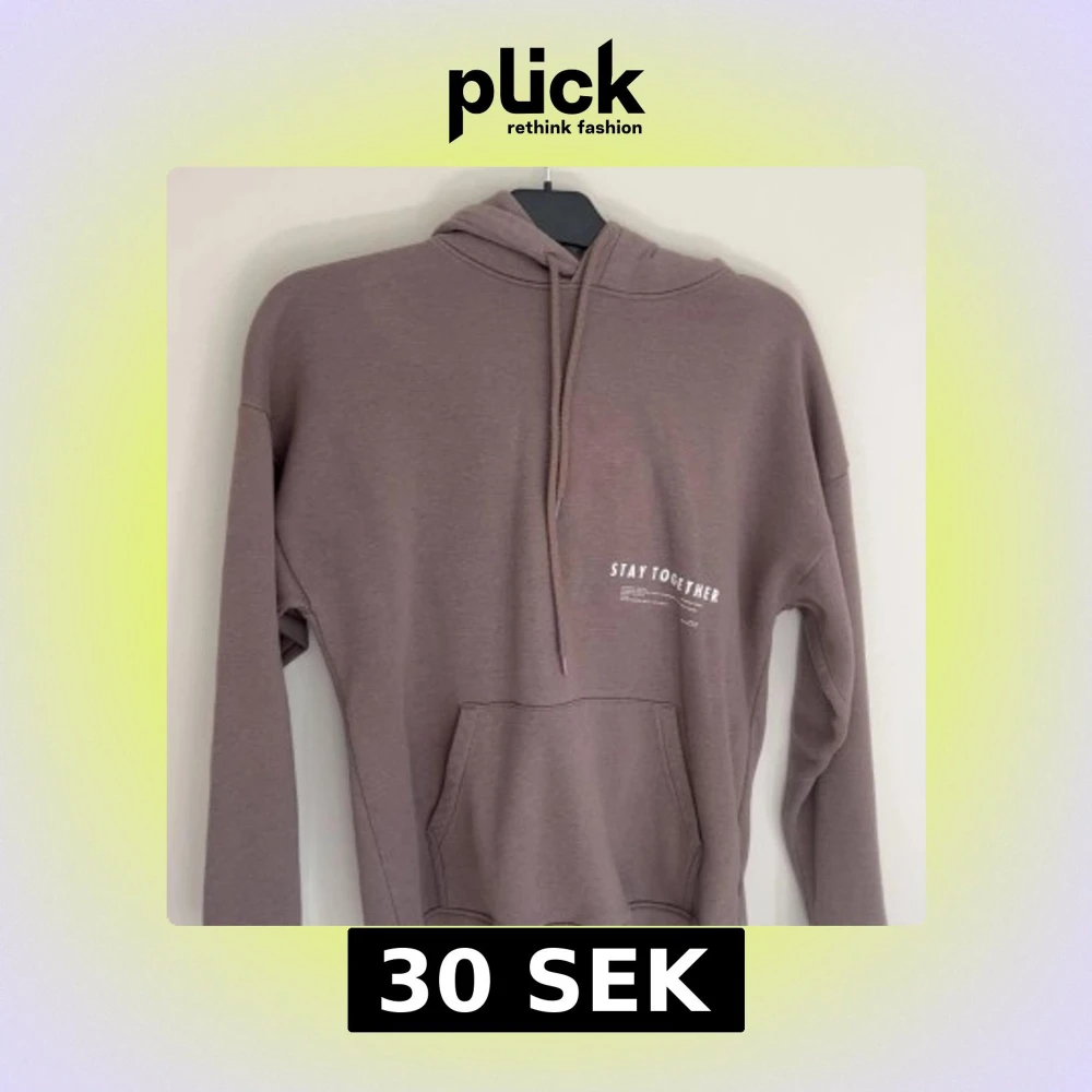 Säljer en ljusbrun hoodie med vit text 'STAY TOGETHER' på framsidan och en lista med storstäder på ryggen.🩷
