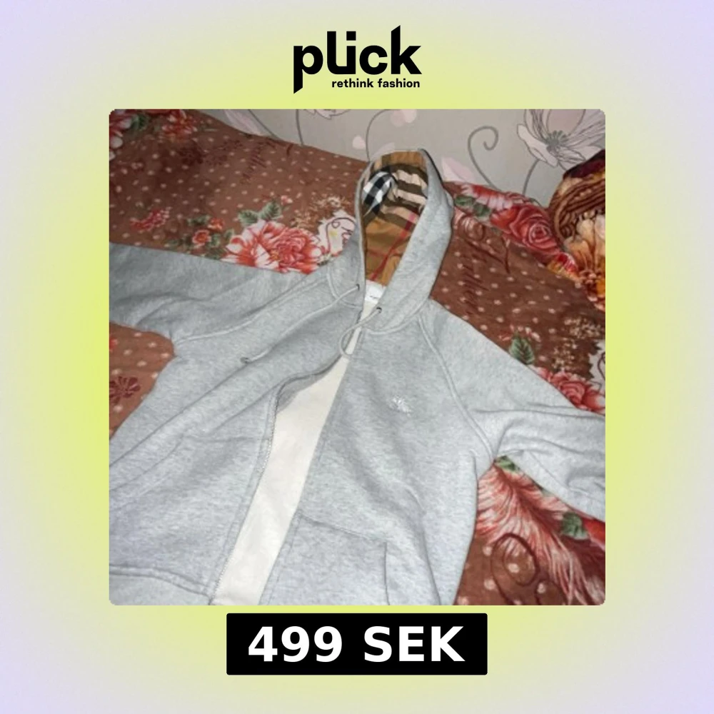 Snygg grå hoodie från Burberry med dragkedja och luva . Insidan av huvan har det rutiga Burberry-mönstret i beige, svart och rött. Tröjan har snörning vid huvan och två fickor framtill. Perfekt för en chill och stilren look.