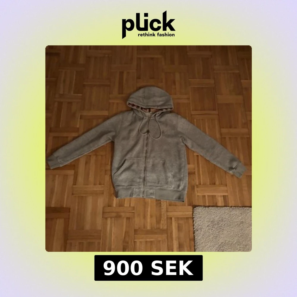 Grå Burberry hoodie med rutig huva/ PRIS KAN DISKUTERAS/
