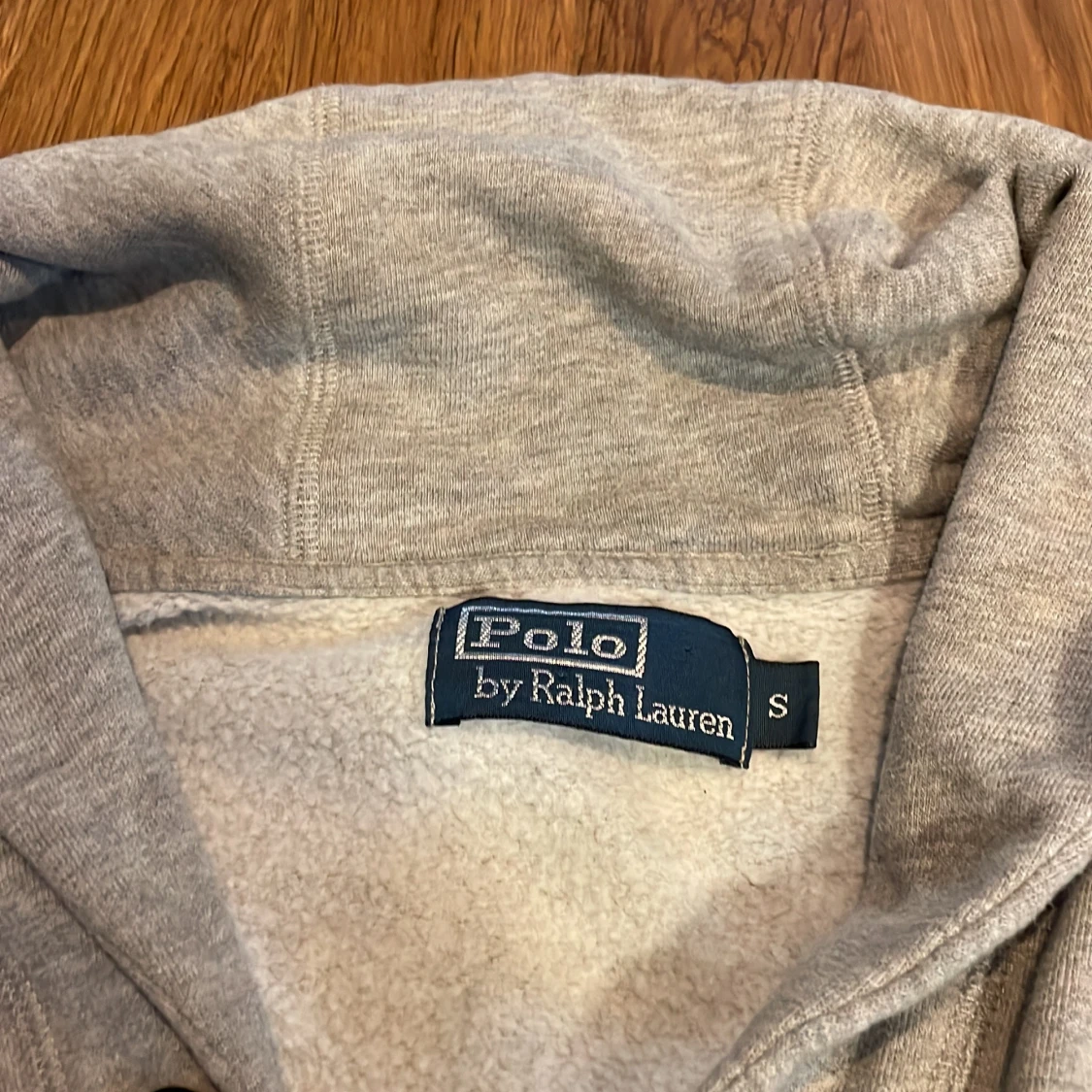 Mysig ljusgrå hoodie-kofta från Polo Ralph Lauren med knappar framtill, två stora fickor och broderad logga på bröstet. Utsidan är mjuk och insidan har fleecefoder för extra värme. Perfekt för kyliga dagar och snygg till jeans.