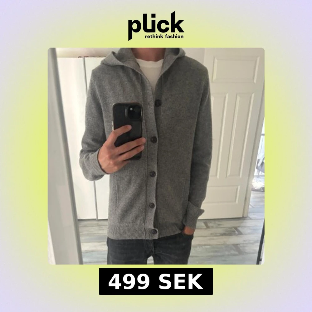 Snygg grå stickad cardigan med luva och knäppning framtill. Tröjan är i väldigt bra skick och kommer från märket Less worries. Nypris runt 1599kr. Hör av er vid frågor!