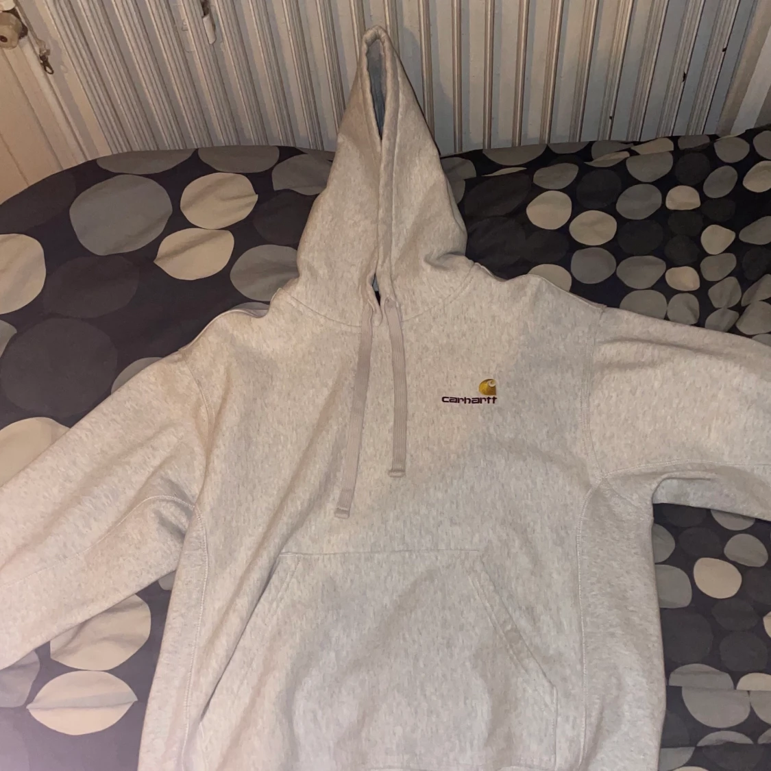En snygg grå carhartt hoodie i strl xs som jag köpte i sommras. Har Max använt den 5 gånger. Om man kollar på skicket så är den som ny