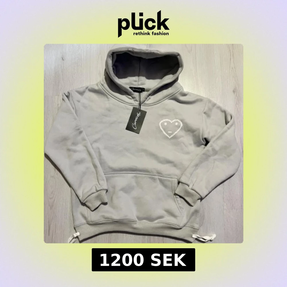 Grå hoodie från Carrsicko med en vit broderad hjärtdetalj på bröstet. Tröjan har huva, ribbade muddar och snörning i nederkant. Mjuk insida och klassisk känguruficka framtill. Perfekt för chill dagar och streetwear.