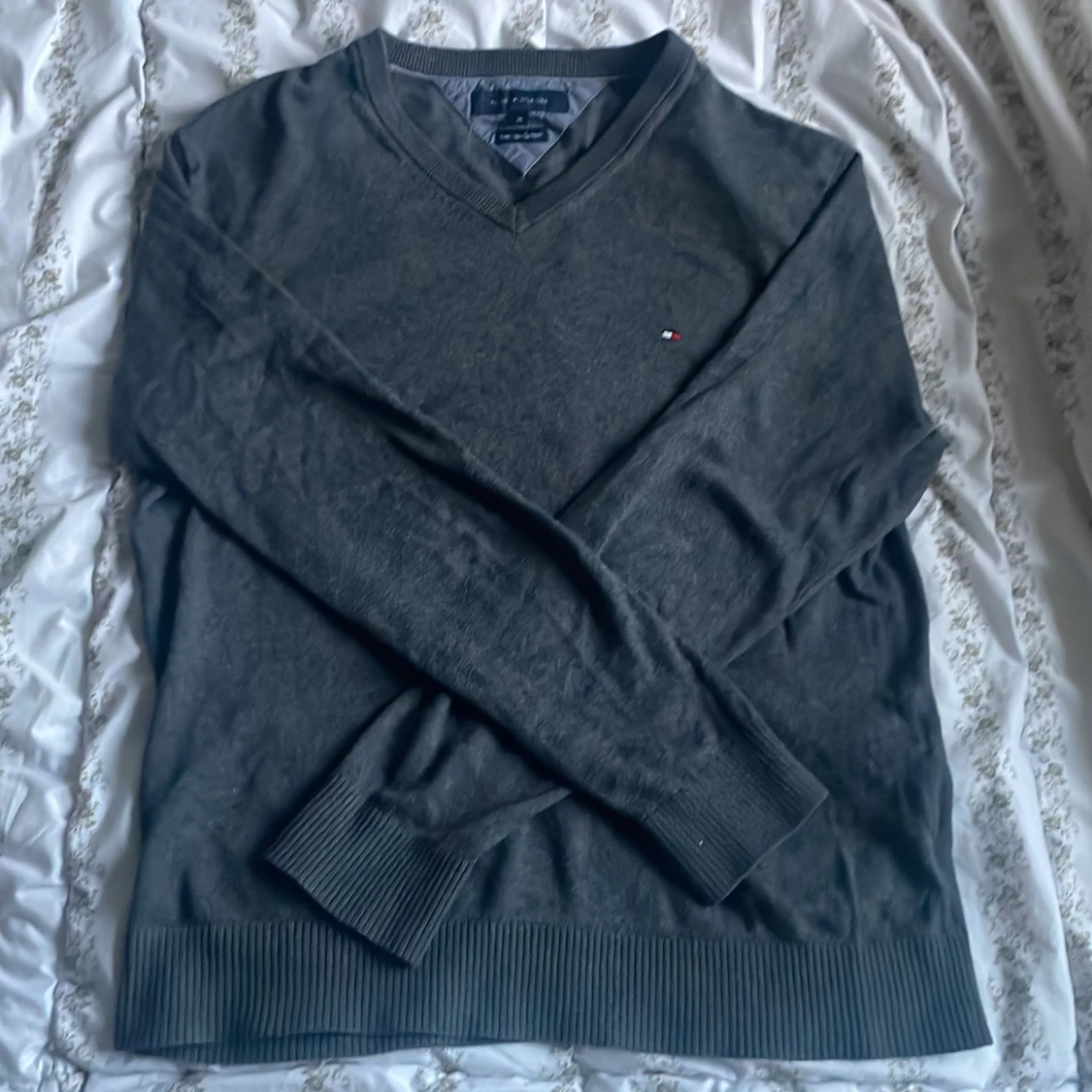 En stilren grå tröja från Tommy Hilfiger i Cashmere. Perfekt för en avslappnad men ändå elegant look. Hör av er vid funderingar!!
