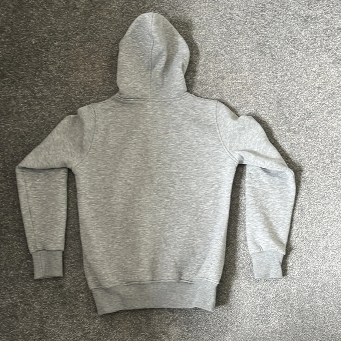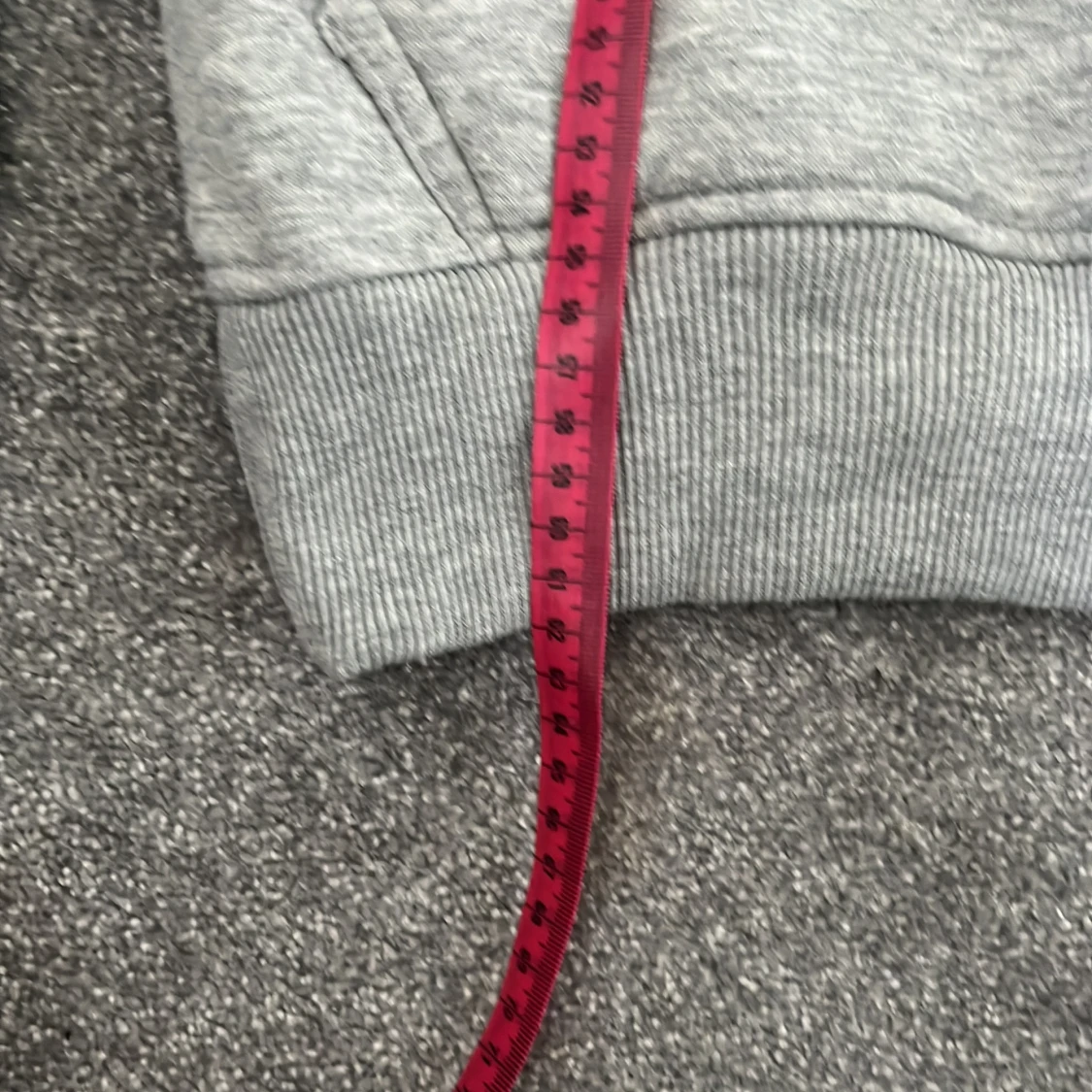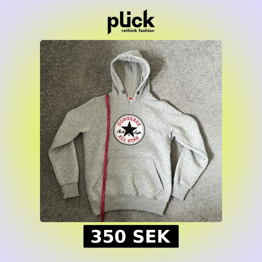 Snygg grå hoodie från Converse med stor broderad All Star-logga på bröstet. Tröjan har huva med metallöljetter, ribbade muddar och magficka. Mjuk insida och klassisk loose passform. Materialet är bomull och polyester. Tröjan är 62 cm lång. Det står ingen storlek i tröjan men tycker att den passar som xs/s