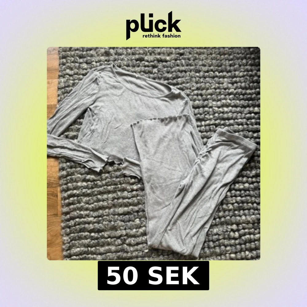 Säljer en ljusgrå croppad långärmad tröja i mjukt och stretchigt bomullsmaterial. Tröjan har råa kanter och en enkel, stilren design som passar perfekt till chill dagar. Matchande byxor med rynkdetalj bak ingår.