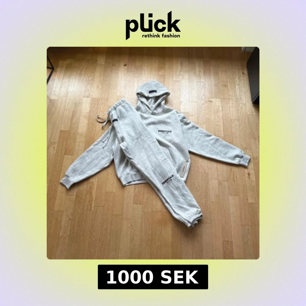 Säljer en grå hoodie från Essentials by Fear of God. Tröjan har huva, magficka och svart logotyptryck på bröstet. Mjuk och skön bomullskvalitet, perfekt för chill dagar. Passformen är loose och ärmarna är långa med ribbade muddar.