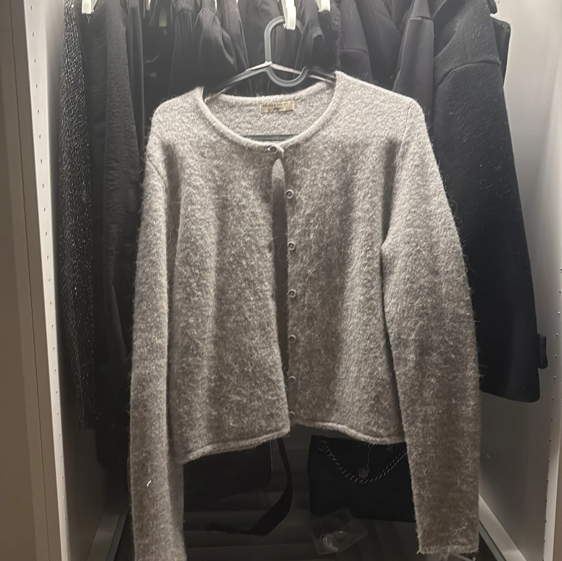 Mysig grå kofta från gina med fluffig känsla och rund halsringning. Koftan har långa ärmar och knäpps med små knappar framtill. Perfekt för lager-på-lager och chill dagar.