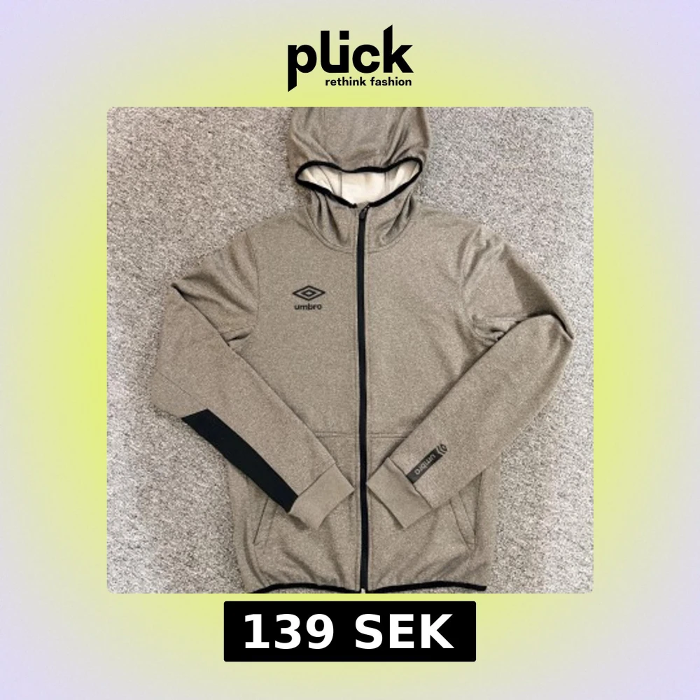 Säljer en grå hoodie från Umbro med svart logga på bröstet och ärmen. Den är XS men passar även som S. Den är 47cm på bräden och 63 på längden. Vid frågor eller behov av fler bilder hör av dig!😊