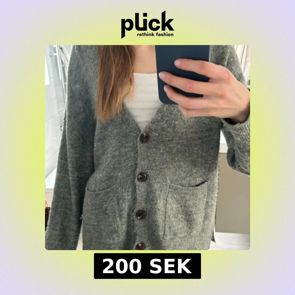 Mysig grå/grö kofta med stora bruna knappar och två framfickor. Använd en gång så i perfekt skick! En del alpacka i så ganska varm.
