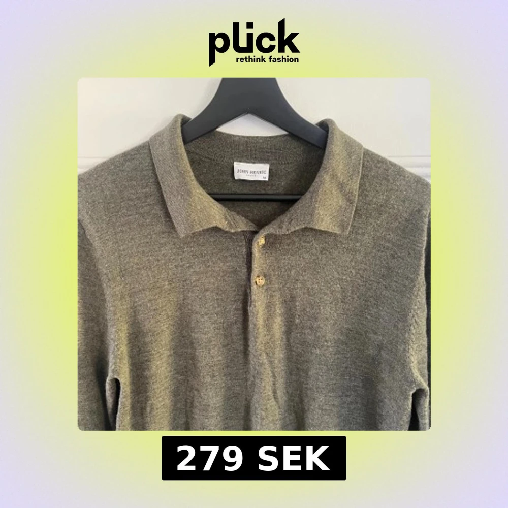 Snygg grå stickad pikétröja från John Henric, strl M men passar nog S mer, mkt bra skick