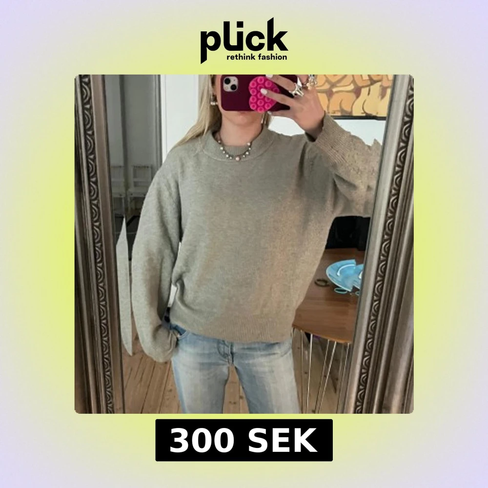 Säljer en mysig grå stickad tröja med normal passform. Tröjan har långa ärmar och ribbade muddar vid ärmslut och nederkant. Perfekt för kyligare dagar.