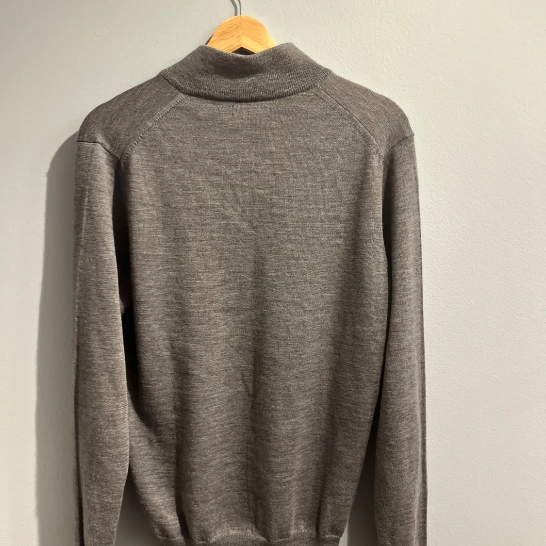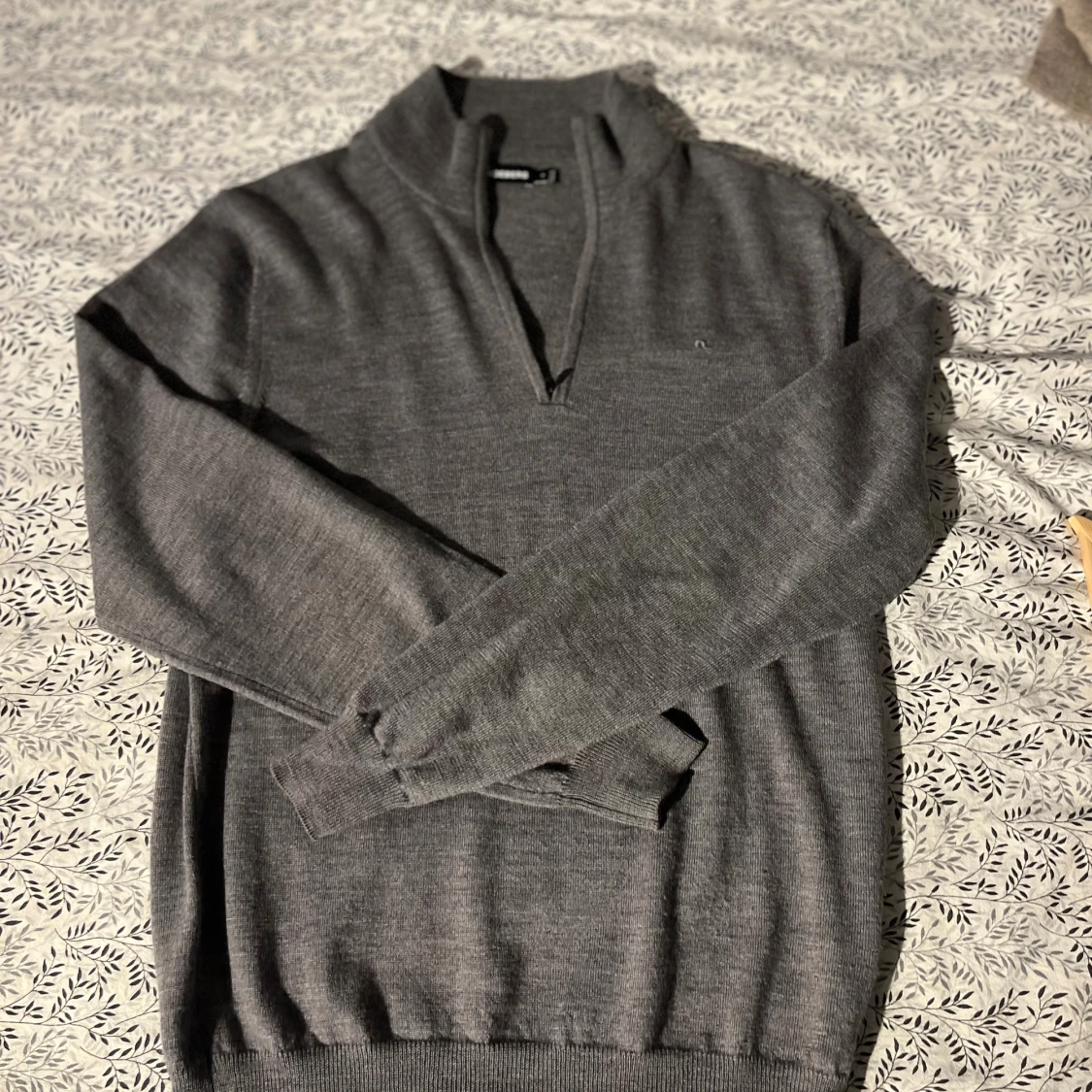 Snygg grå stickad tröja från J.Lindeberg med half zip och hög krage. Tröjan har lång ärm och diskret logga på bröstet. Perfekt för lager-på-lager och passar till både jeans och chinos.
