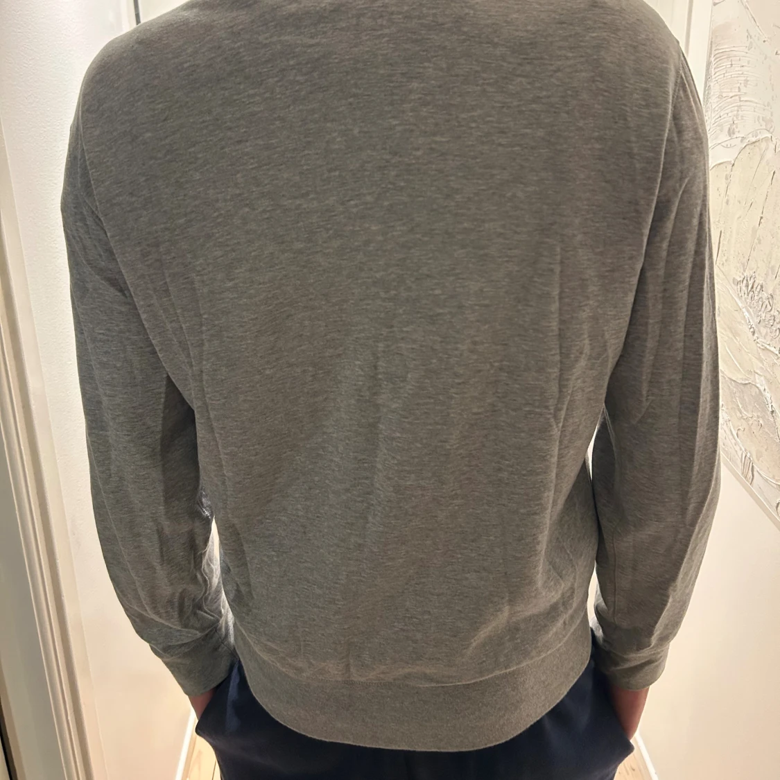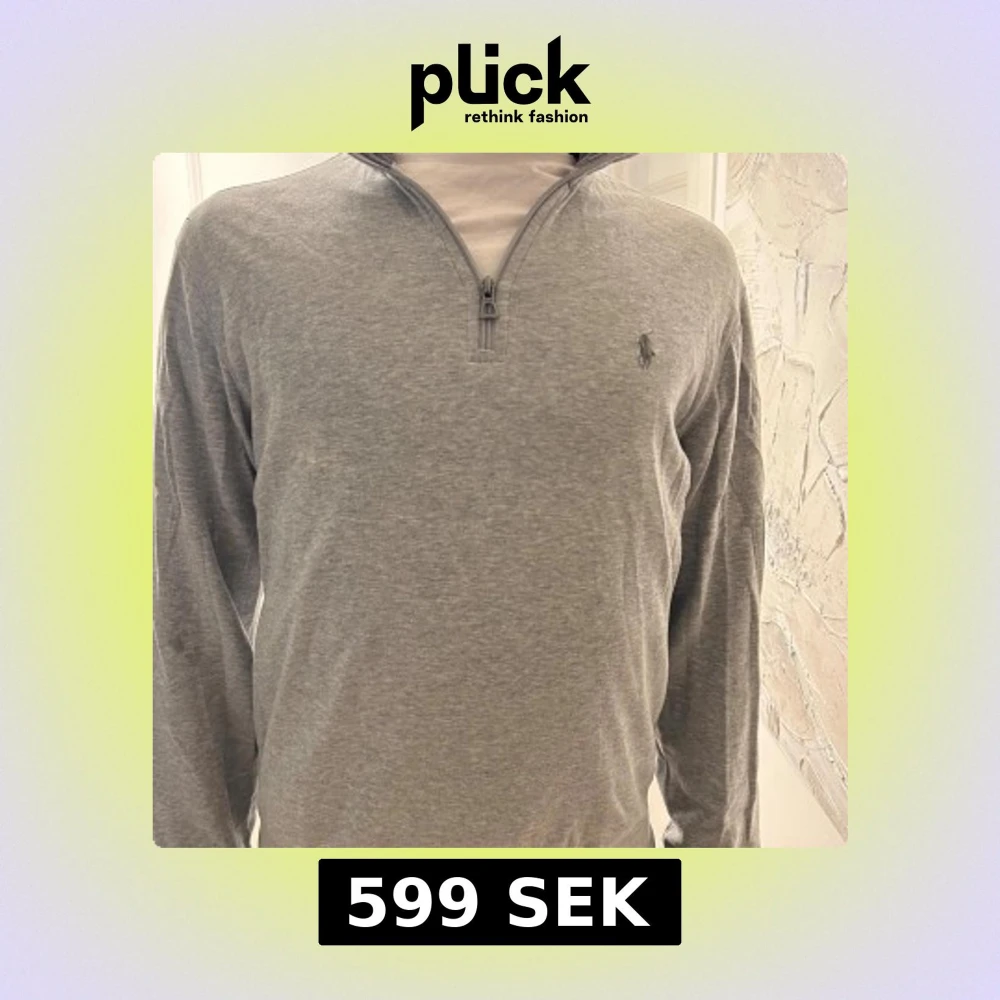 Snygg grå långärmad tröja från Polo Ralph Lauren med half zip och klassisk broderad logga på bröstet. Inga deffekter förutom en liten rosa fläck under armen, svår att se! Unik tröja, knappast använd. Kom dm för mer frågor