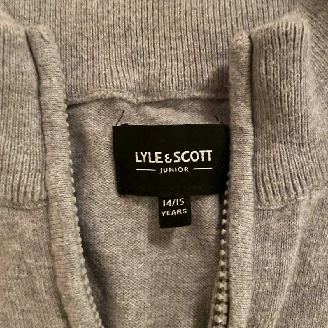 Snygg grå långärmad tröja från Lyle & Scott med half zip och klassisk gul logga på bröstet. Tröjan är i mjuk bomull och har ribbade muddar vid ärmslut och nederkant. Perfekt för dig som gillar stilren och enkel design. Hör gärna av er vid frågor! Användt fåtal gånger.