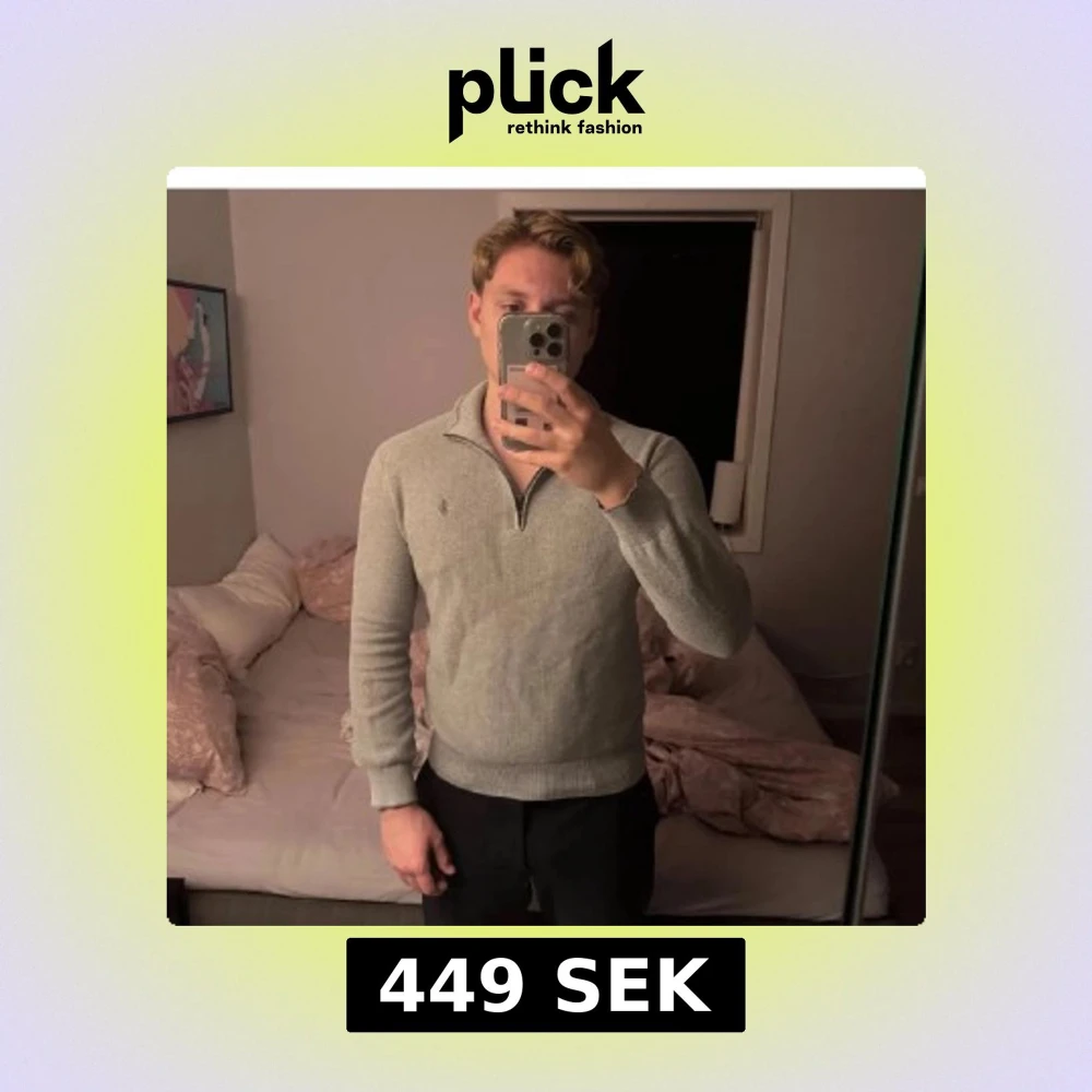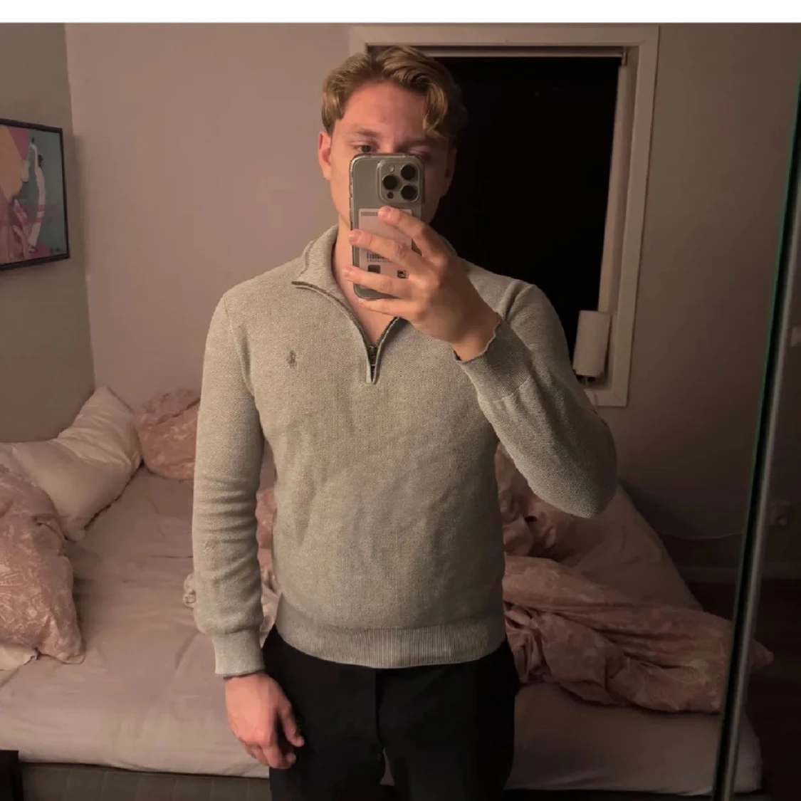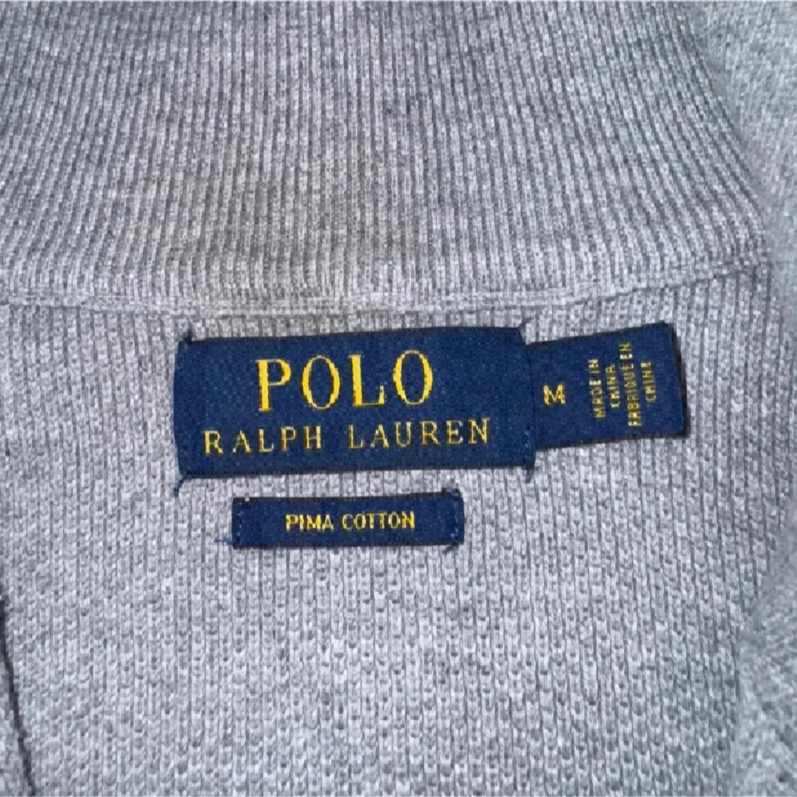 Snygg grå tröja från Polo Ralph Lauren i pima bomull. Klassisk half zip med liten broderad logga på bröstet. Långärmad modell med ribbade muddar och krage. Perfekt för lager-på-lager och chill stil. Lagat ett hål på armen