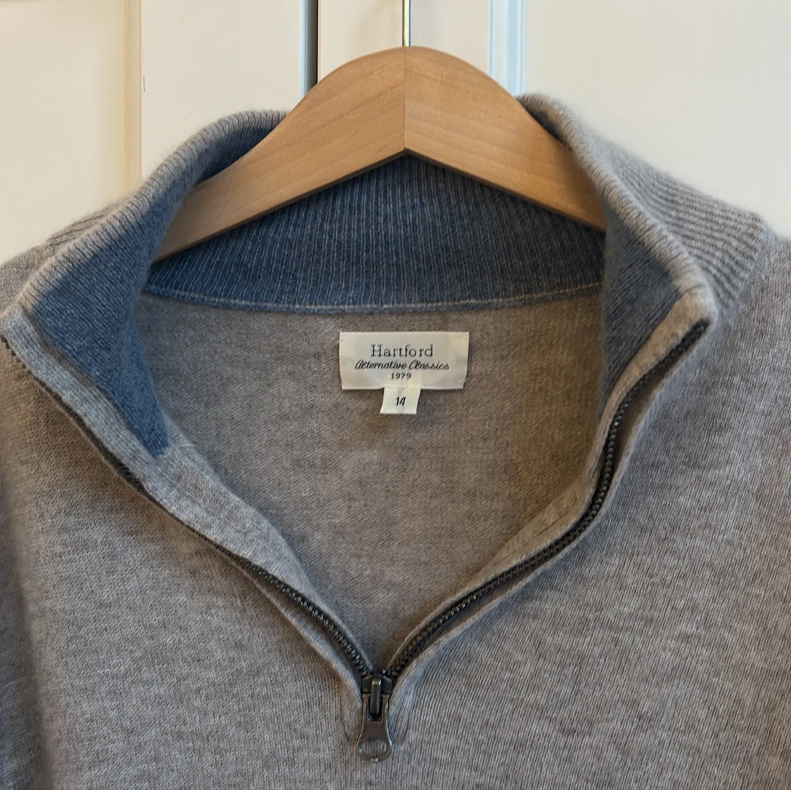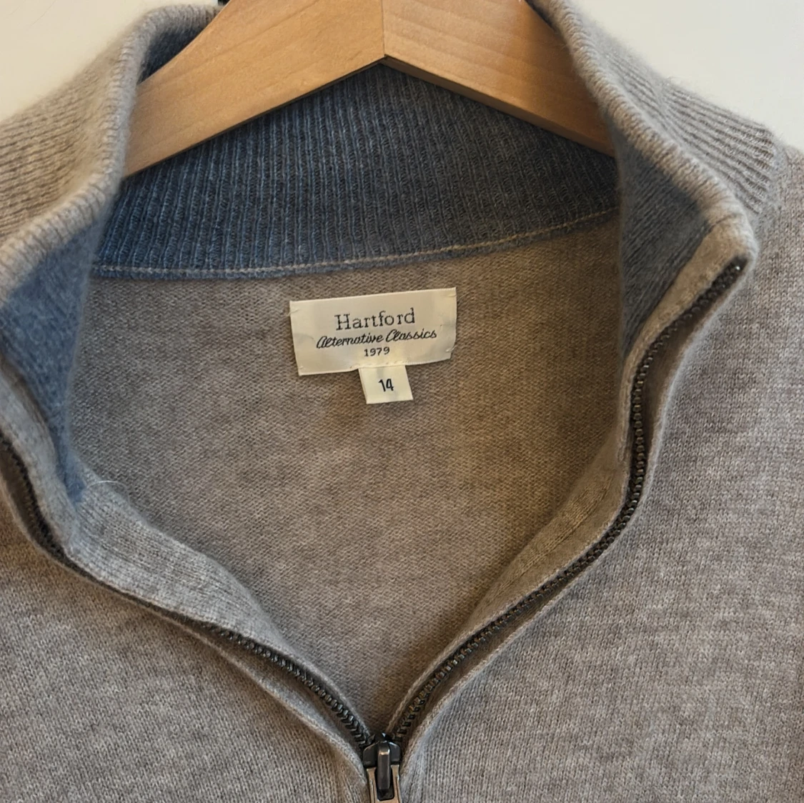 Säljer en stilren grå långärmad tröja från Hartford med halv dragkedja i halsen. Tröjan är i mjukt material och har ribbade muddar samt krage. Perfekt för lager-på-lager och chill dagar.
