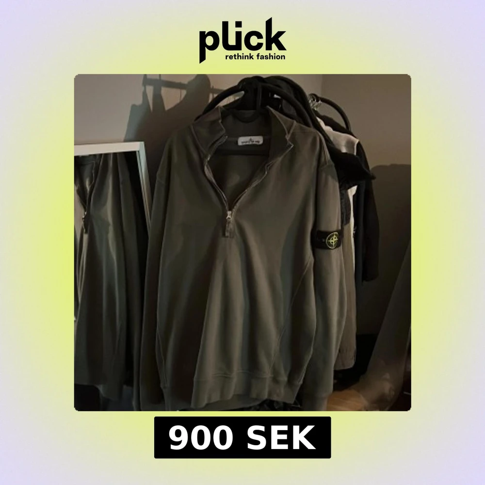 Säljer en grå halvzip tröja från Stone Island med klassisk logga på ärmen. Tröjan har lång ärm, ståkrage och dragkedja framtill. Perfekt för dig som gillar stilrena och exklusiva plagg.