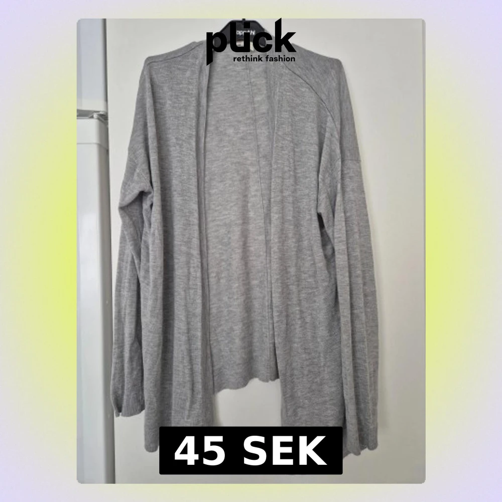 En enkel och stilren ljusgrå kofta från H&Mi storlek S. Koftan sopar lätt över höfterna, har lång ärm och är öppen framtill utan knappar. Perfekt för lager på lager och chill vardagsstil.