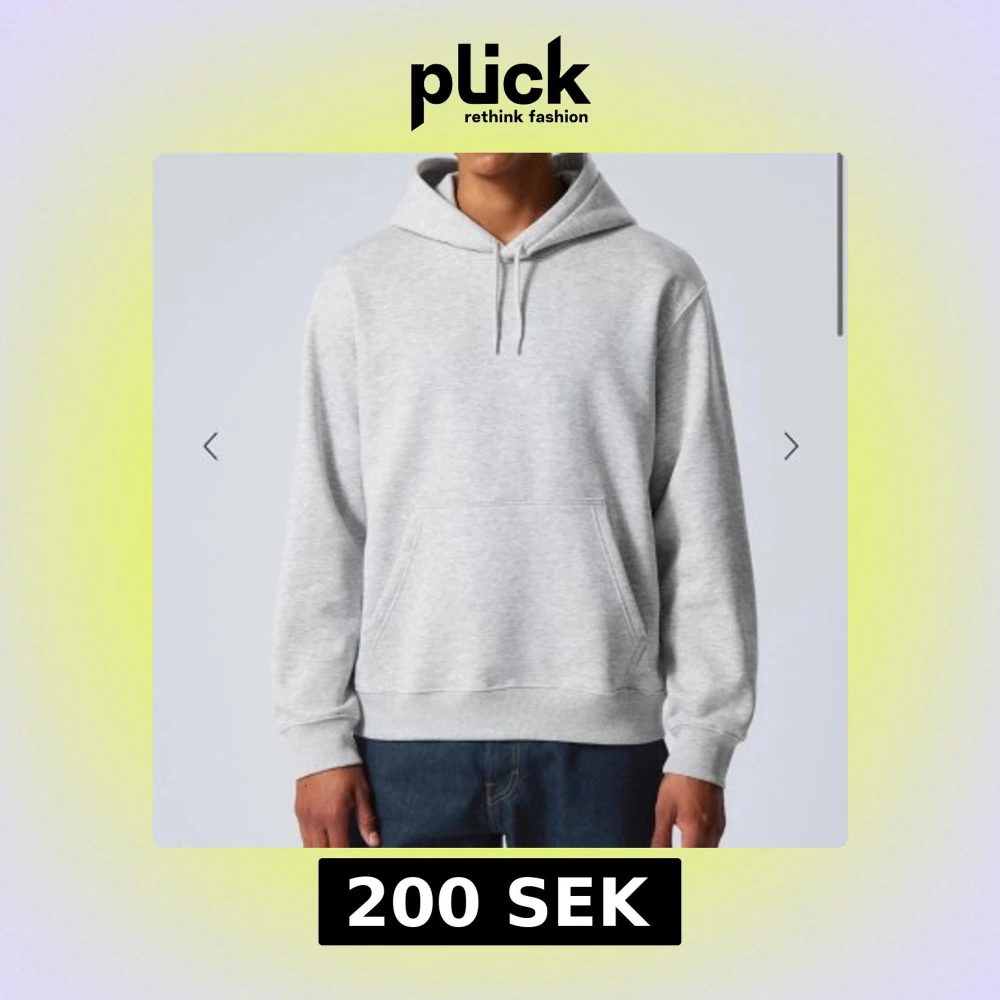 Säljer en stilren grå hoodie med känguruficka och justerbar huva. Perfekt för en avslappnad look. Passar bra till jeans eller joggers.