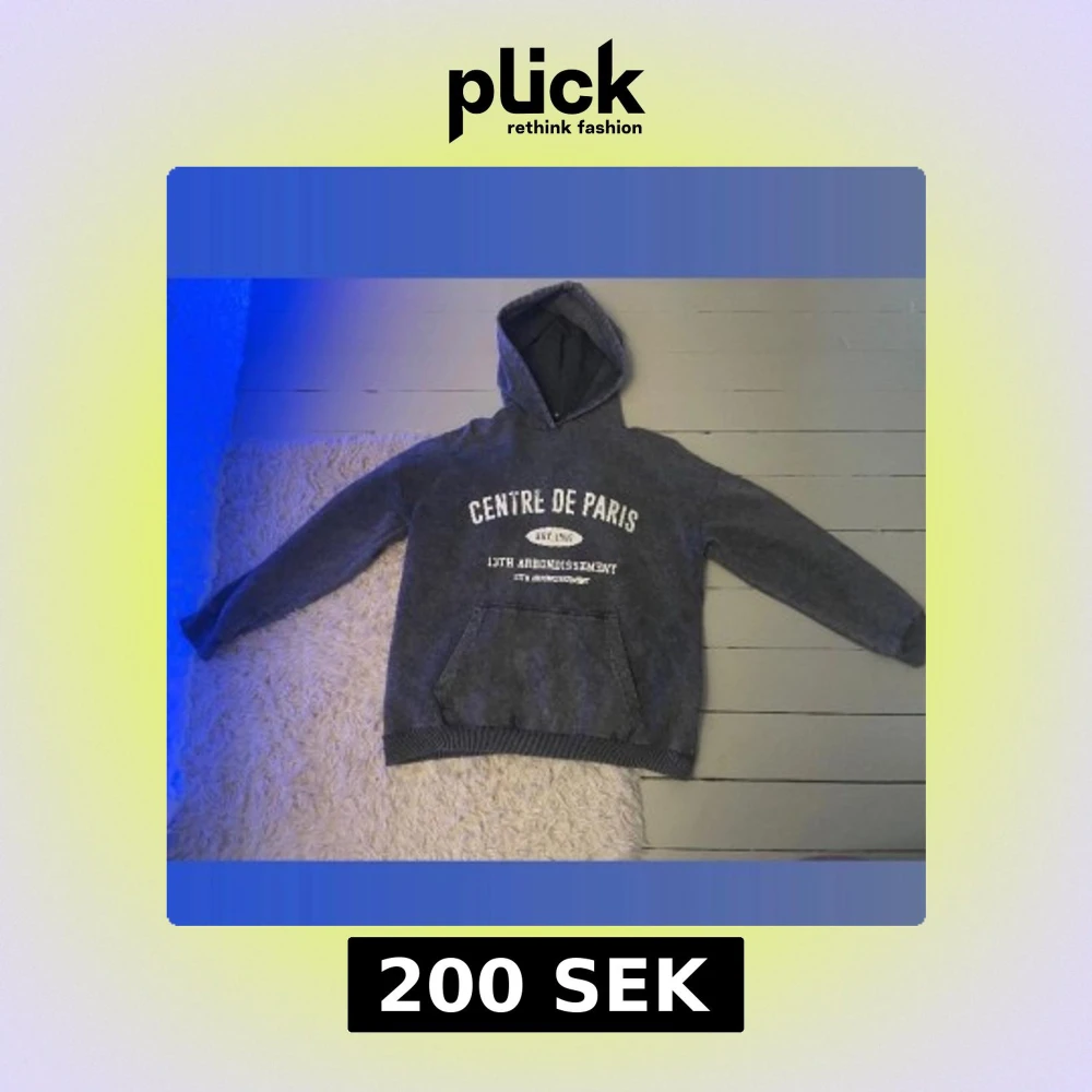 Säljer en mörkgrå hoodie från boohoo med vit textprint på bröstet. Tröjan har huva, känguruficka och ribbade muddar vid ärmslut och nederkant. Perfekt för chill dagar eller när du vill ha en avslappnad stil.