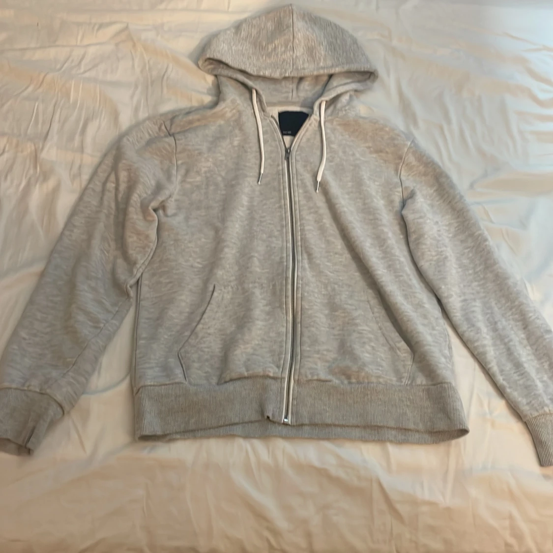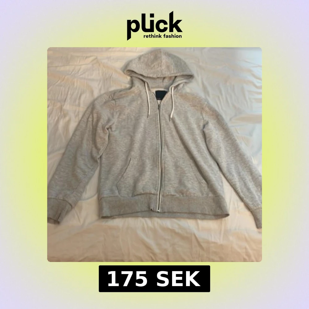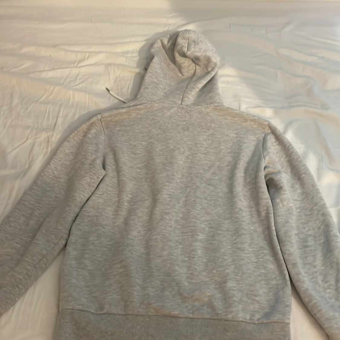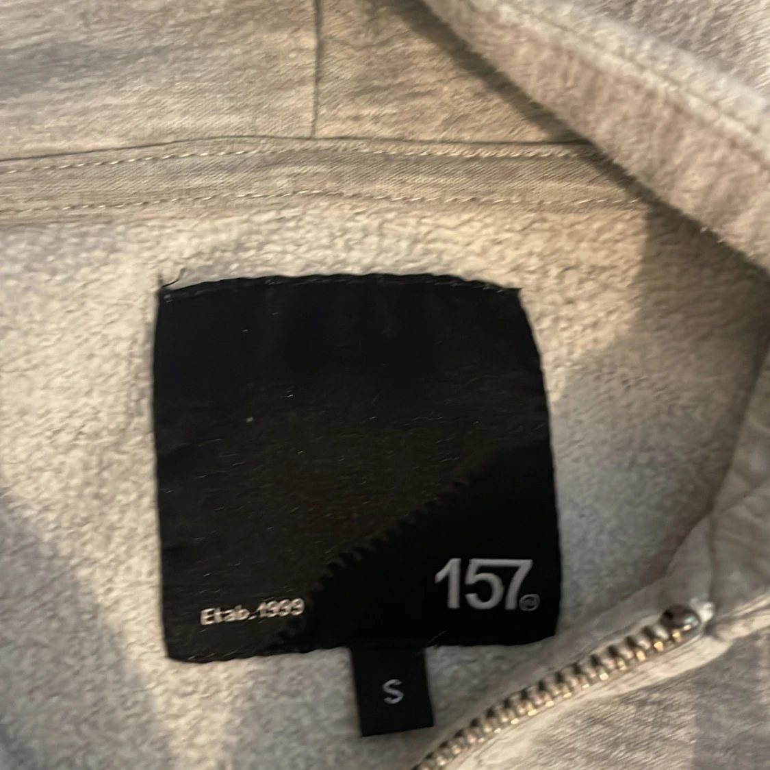 Säljer en stilren grå hoodie från 157 i storlek S. Den har en dragkedja framtill och en praktisk huva med snören. Perfekt för en avslappnad look.