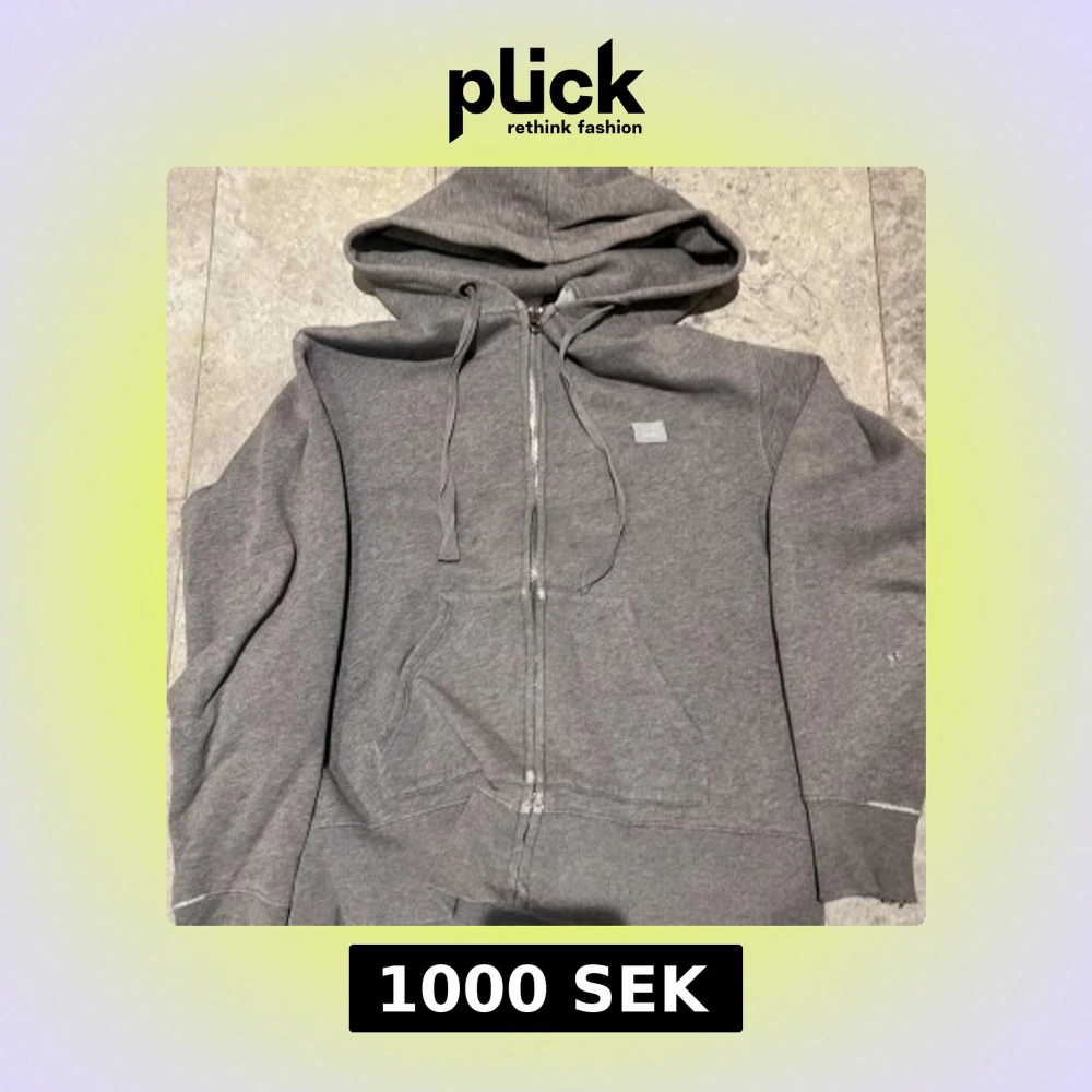 Grå hoodie från Acne Studios med dragkedja, huva och snörning. Mjuk insida och klassisk passform. Perfekt för chill dagar eller när du vill ha en enkel och stilren look. Fickor framtill och diskret logga på bröstet.