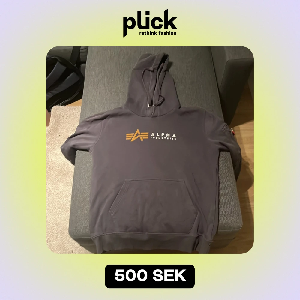 Säljer en snygg grå hoodie från Alpha Industries i storlek M. Den har en klassisk känguruficka och en cool detalj med en röd 'Remove Before Flight'-tag på ärmen. Perfekt för höst och vinter, och den är i mycket bra skick. Passar både till vardags och chillkvällar. Man ser inga tecken på användning. Tveka inte på att höra av er om ni har någon fråga!😊