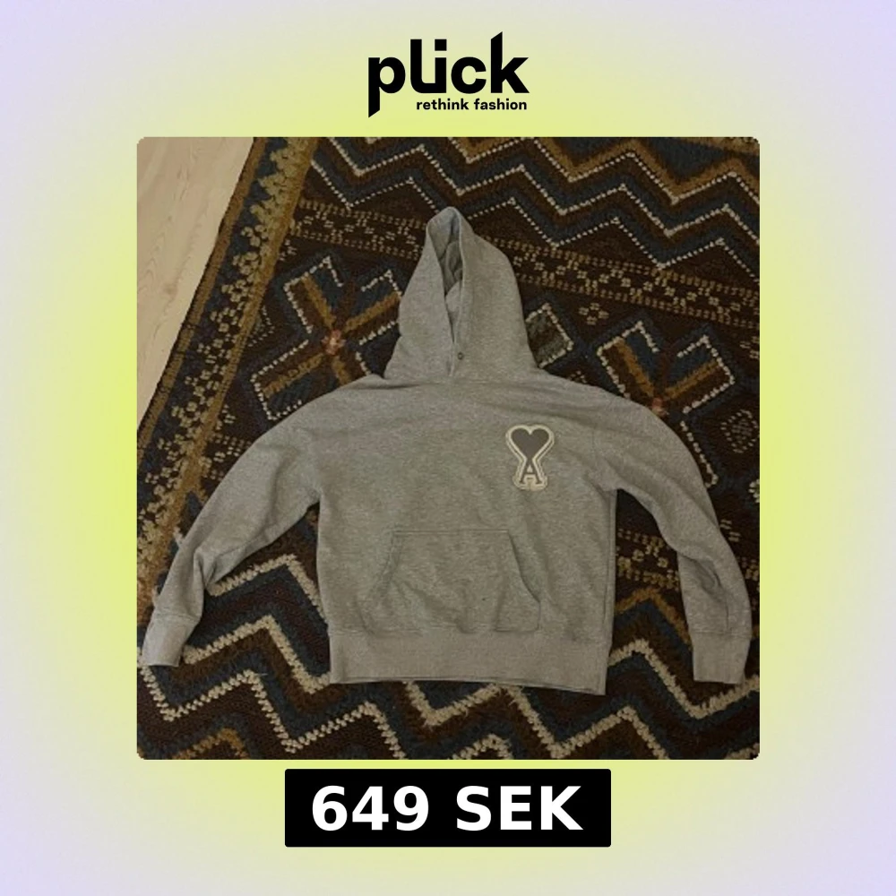 Säljer en grå hoodie från AMI Paris med deras ikoniska hjärta-A patch på bröstet. Tröjan har huva, känguruficka och är tillverkad i mjuk bomull. Perfekt för chill dagar och skön avslappnad stil. Sitter S-M
