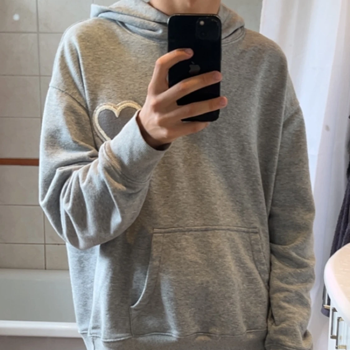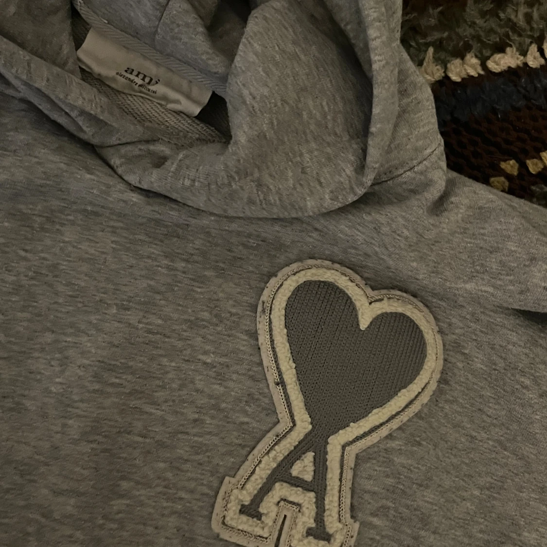 Grå hoodie från AMI Paris med hjärtdetalj