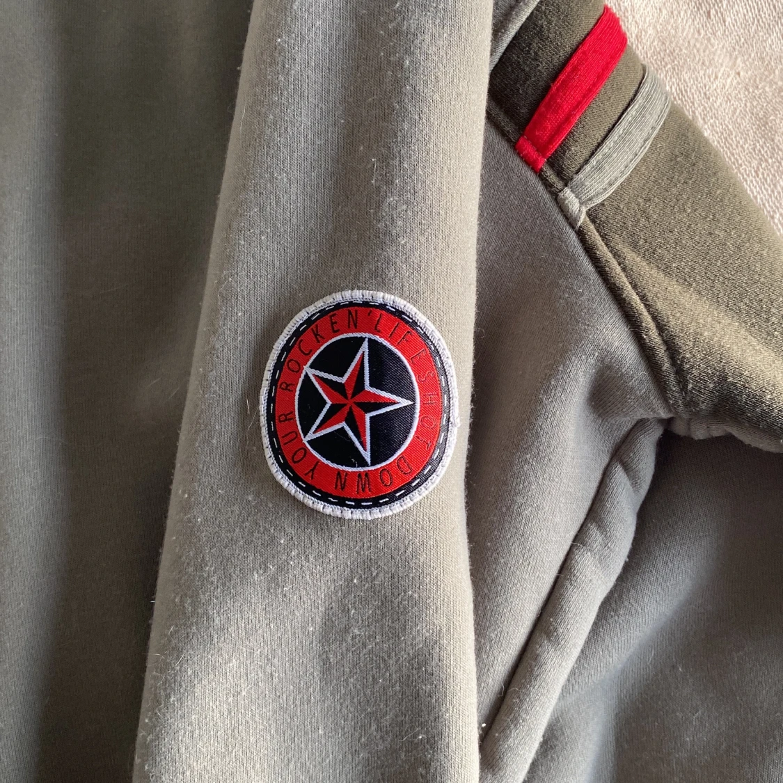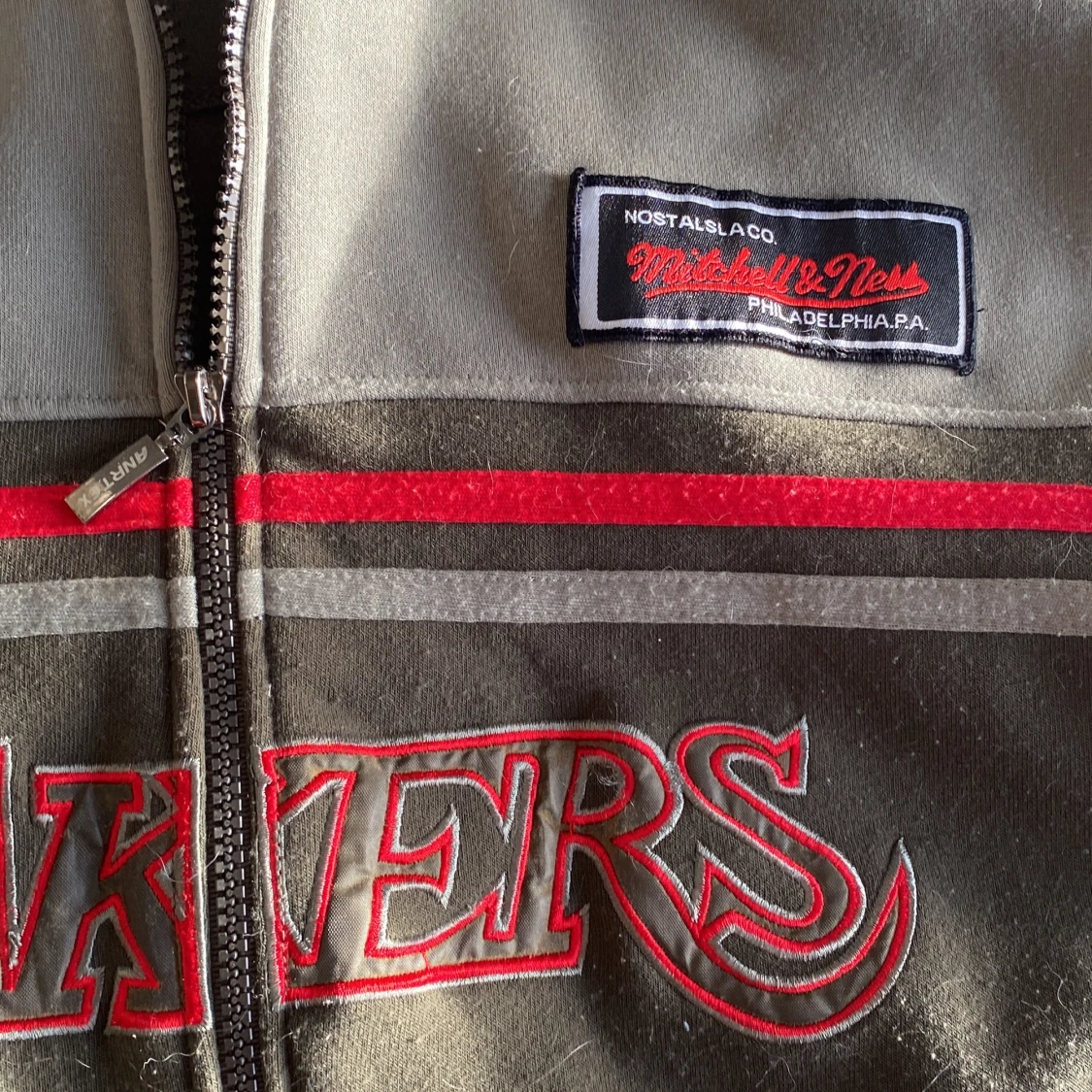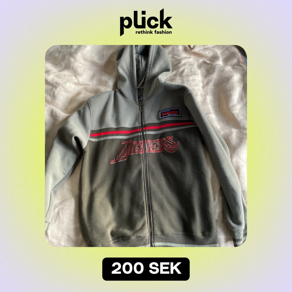 Säljer en grå hoodie från Anrtex i bra skick. Den har en dragkedja framtill och ett coolt Lakers-tryck på bröstet. Det finns också en patch på ärmen med en stjärna och text. Perfekt för höst och vinter, och den är superbekväm att ha på sig. Passar både till vardags och chillkvällar.