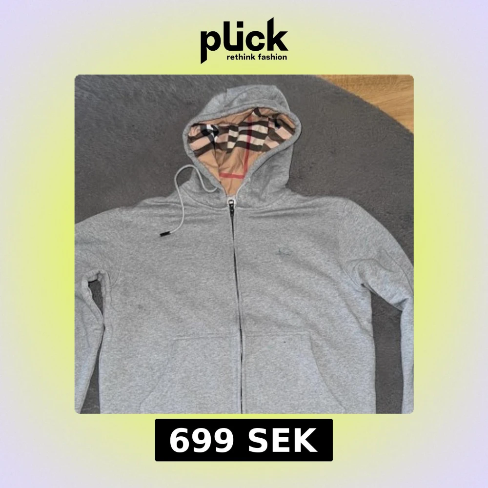 Säljer en stilren grå hoodie från Burberry med dragkedja och klassiskt rutigt mönster på insidan av huvan. Tröjan har långa ärmar och en justerbar huva med snörning. Perfekt för en avslappnad och trendig look.