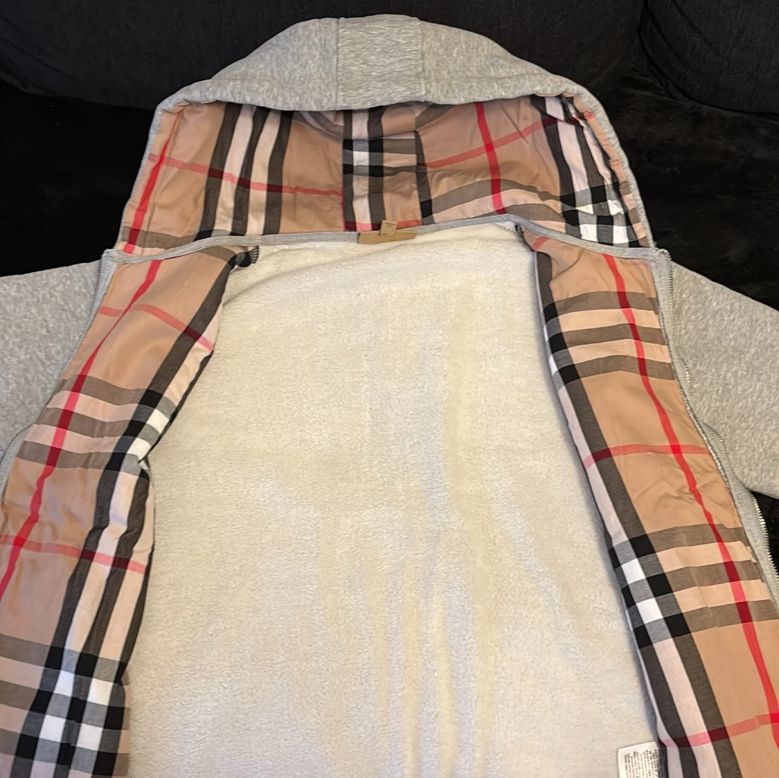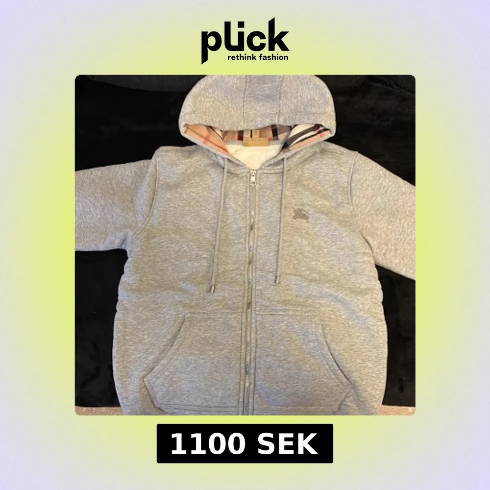 Snygg grå hoodie från Burberry med klassiskt rutigt foder i huvan och insidan. Tröjan har dragkedja, snörning vid huvan och två stora fickor fram. Broderad Burberry-logga på bröstet. Perfekt för dig som gillar exklusiva streetwear-vibes.