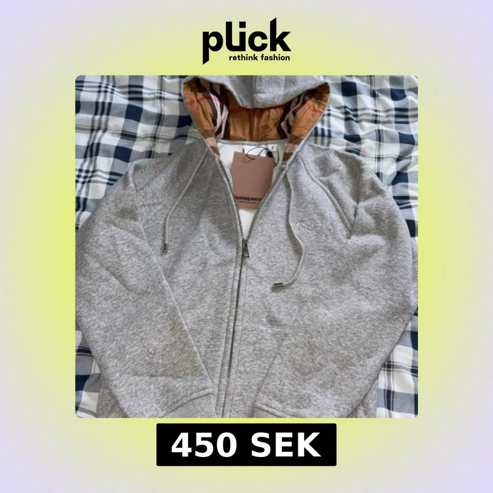 Säljer en grå hoodie från Burberry med klassiskt rutigt foder i huvan och broderad logga på bröstet. Tröjan har hel dragkedja, snörning i huvan och ribbade muddar. Perfekt för dig som vill ha en stilren och lyxig vardagslook.