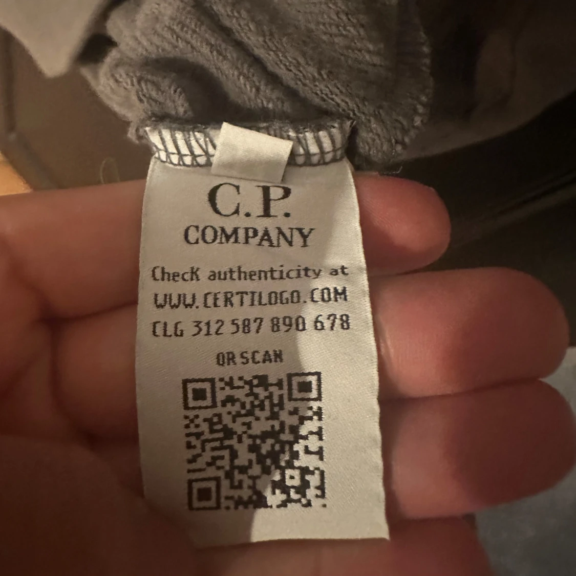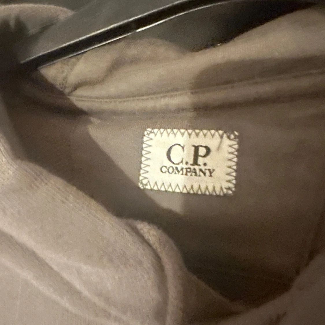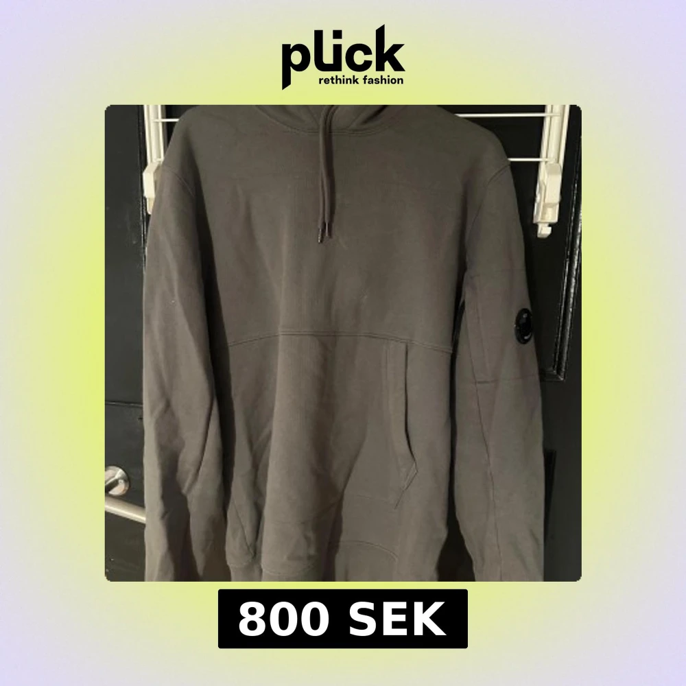 Säljer en stilren grå hoodie från C.P. Company. Tröjan har en klassisk design med en justerbar huva och en ficka framtill. Märkets logotyp finns på ärmen som en snygg detalj.