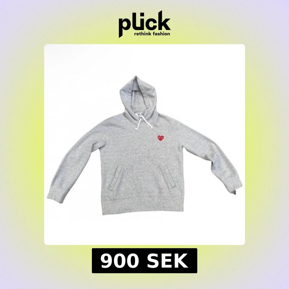 Grå hoodie med huva och snörning från Comme des Garçons Play. Tröjan har ett rött hjärta broderat på bröstet och praktiska fickor framtill. Perfekt för en avslappnad och stilren look.