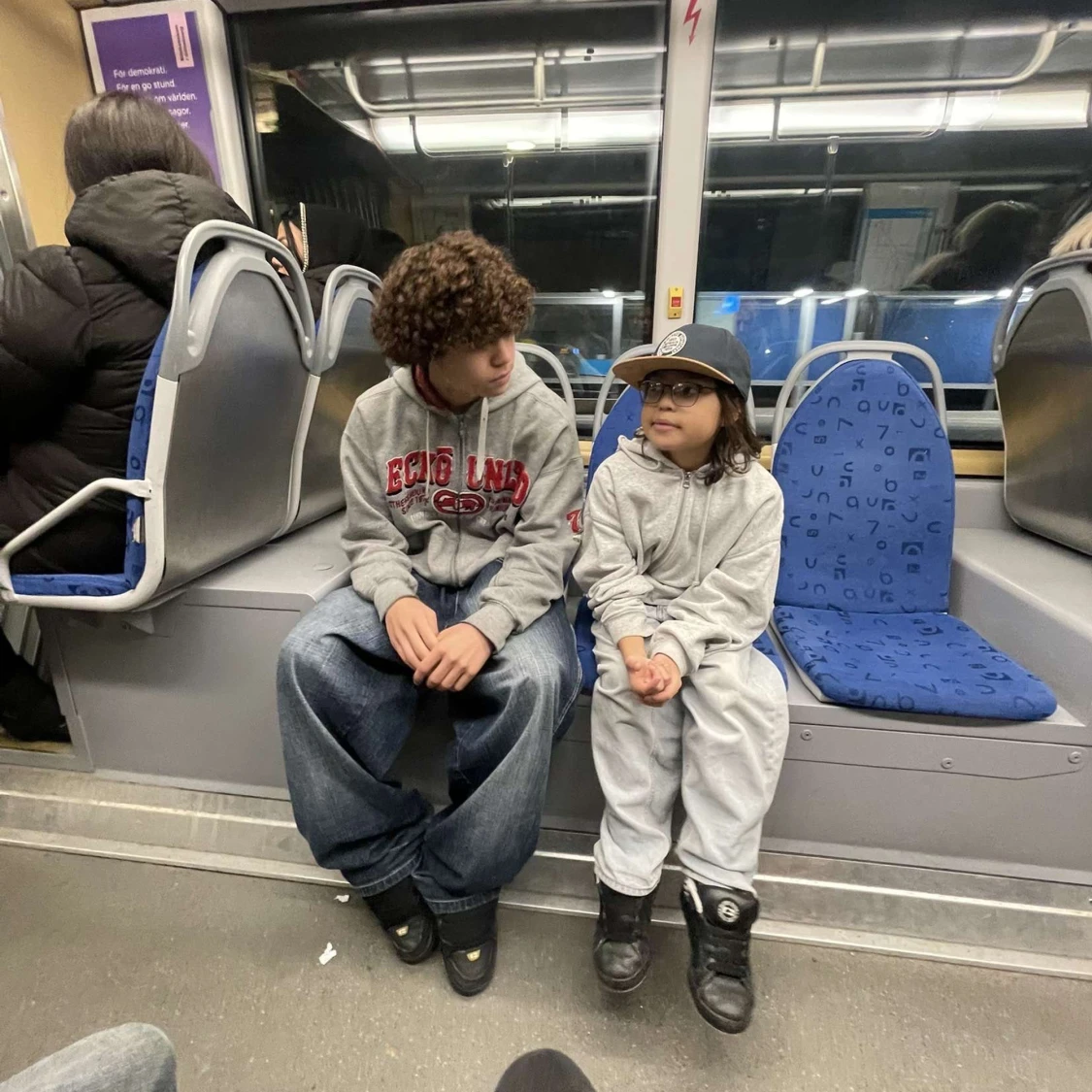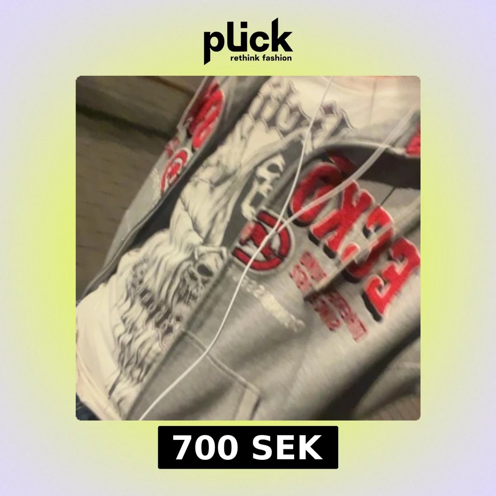 Säljer en grå hoodie från Ecko Unltd med stora röda och vita tryck på bröstet och ärmen. Tröjan har huva med röd insida, känguruficka och ribbade muddar. Perfekt för dig som gillar streetwear och vill sticka ut med en klassisk look.