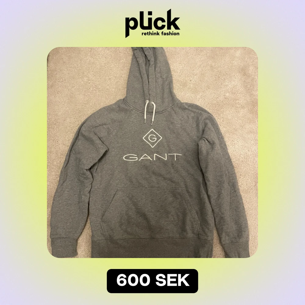 Säljer en snygg grå hoodie från GANT i mycket bra skick. Den har en stor logga på framsidan och en bekväm passform. Perfekt för både höst och vinter. Huvan har justerbara snören och tröjan är supermjuk och skön att ha på sig. Passar perfekt till vardags eller en chill dag hemma.